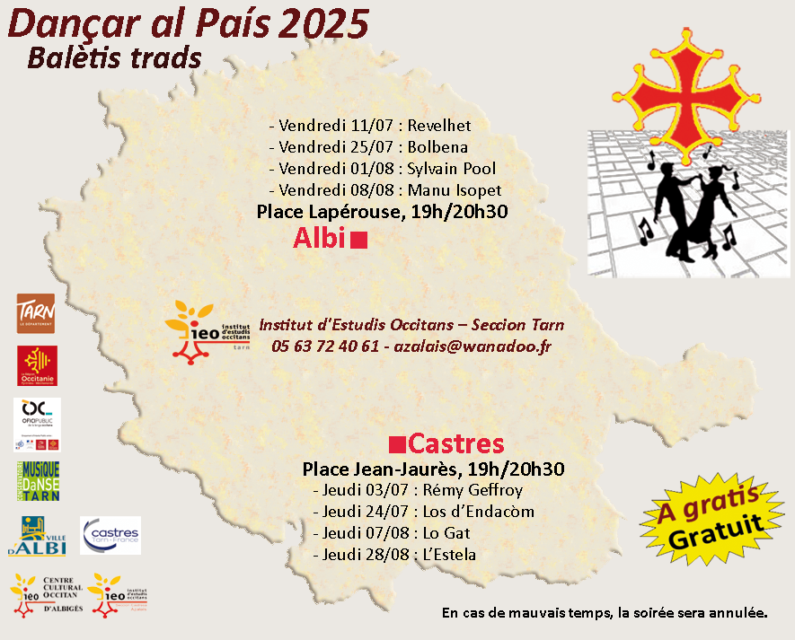 Vous pouvez noter les autres dates des concerts occitans de l’été à Albi et à Castres sur vos agendas :