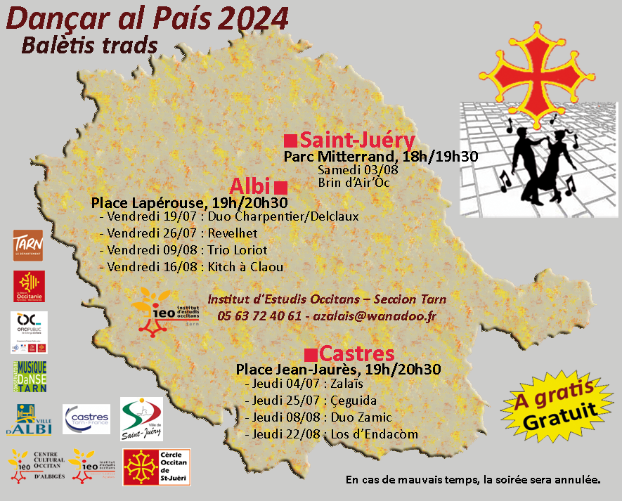 Ce bal gratuit du 4 juillet sera animé par Zalaïs, de 19h à 20h30, sur la place Jean Jaurès. (en partenariat avec l’IEO Tarn).