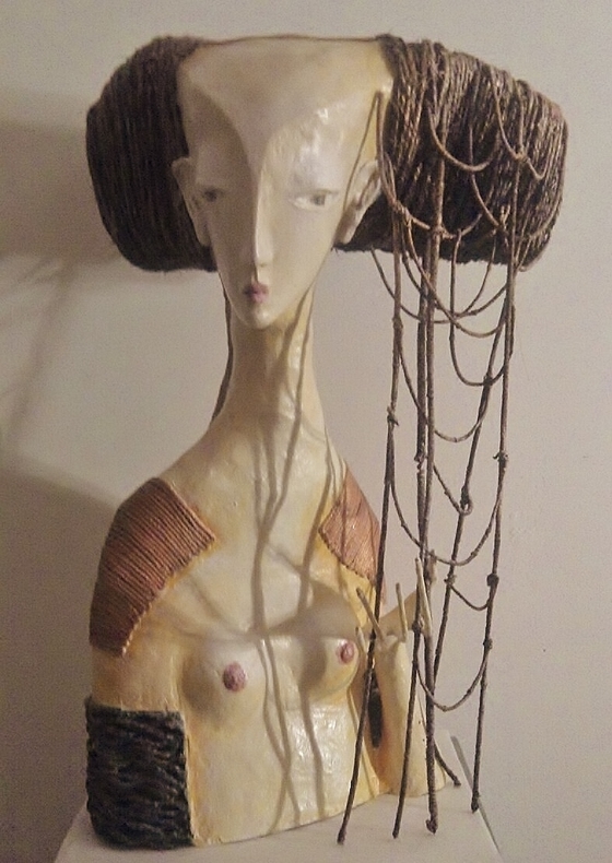 Galerie de sculptures et gouaches d’univers insolites, mystérieux et baroques, figures des temps, légendes et mémoires du monde. Présence singulière et silencieux de corps féminin longilignes en bustes reliquaires. Quête spirituelle d’un idéal revisitant par le prisme de l’inconscient des figures prototypiques d’une culture humaniste dont celles de la mythologie.