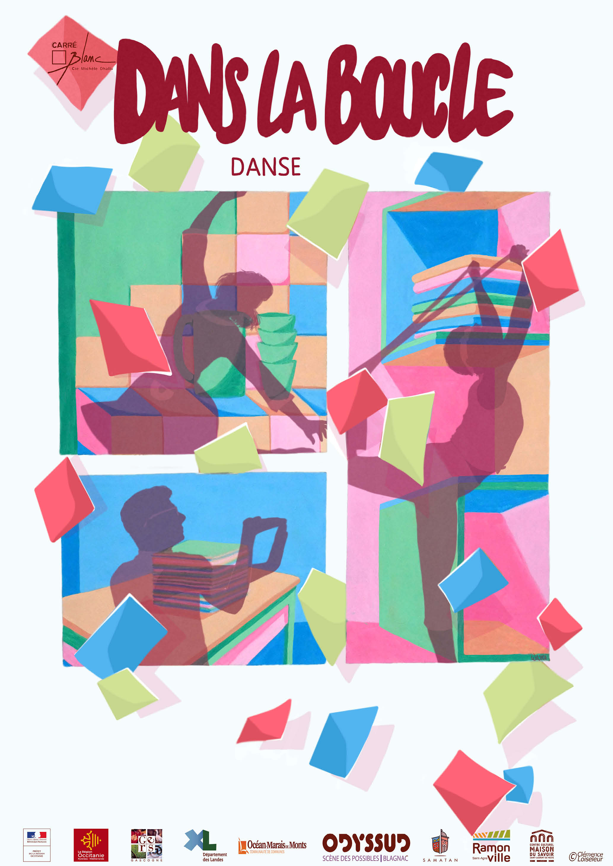 Trio chorégraphique de danse contemporaine aux influences jazz et hip-hop, Dans la boucle questionne nos routines gestuelles, ces mouvement réglés dans le confort de nos foyers, que nous répétons, presque mécaniquement, sans plus y prêter attention. Ancré dans une esthétique vintage Dans la boucle fait chavirer la vie de trois individus pour en faire ressortir émotions, situations cocasses et questionnements . Avec son écriture légère et sensible, Dans la boucle insuffle un vent frais de poésie