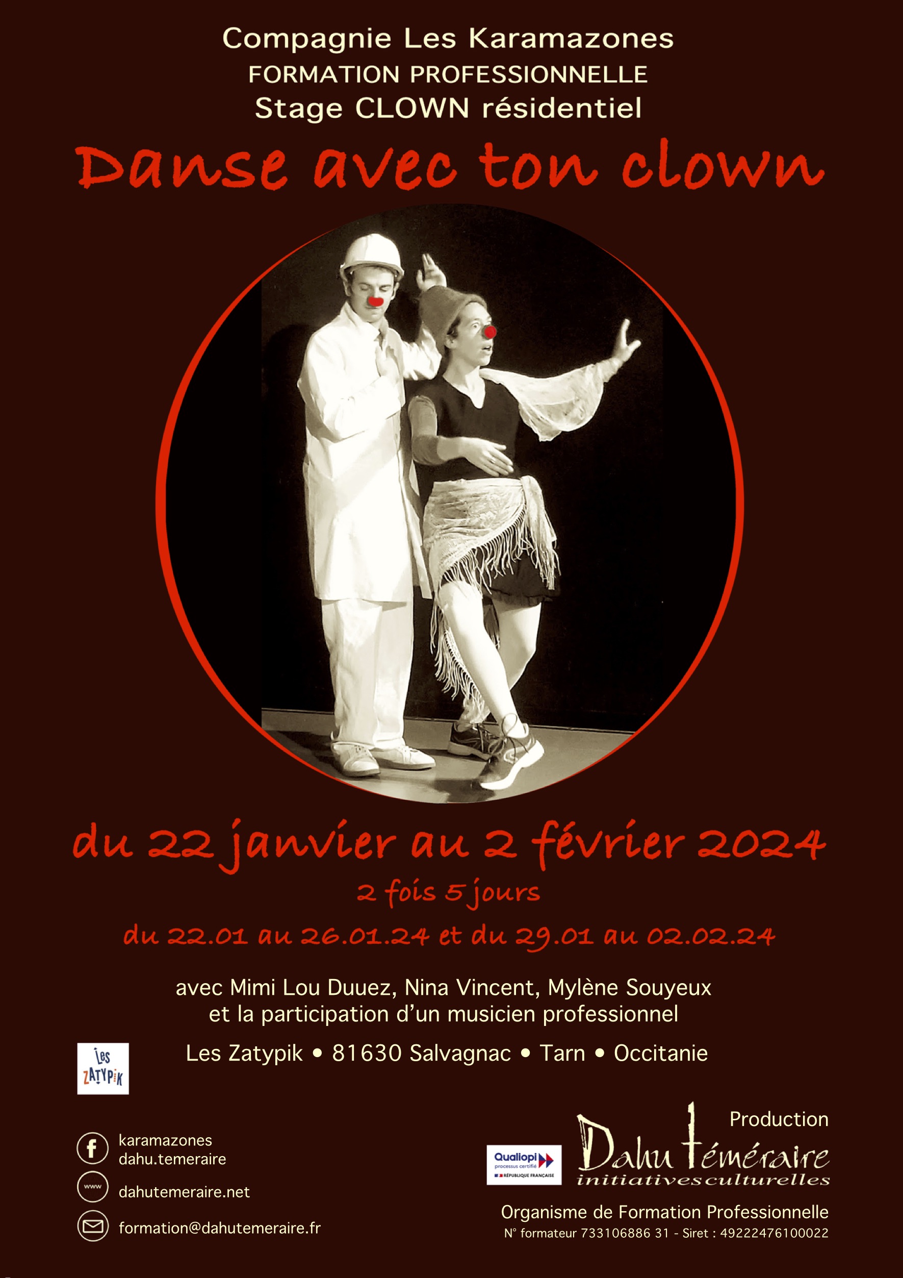 Ce travail fait évoluer en parallèle la spontanéité du clown et la souplesse du corps. Ces deux approches sont destinées à se rencontrer au sein du personnage trouvé en chacun pour lui donner à la fois habileté physique, rapidité d’improvisation et ouverture. Aller vers une qualité propre au clown : la souplesse de corps et d’esprit incarnée dans sa langue gestuelle.