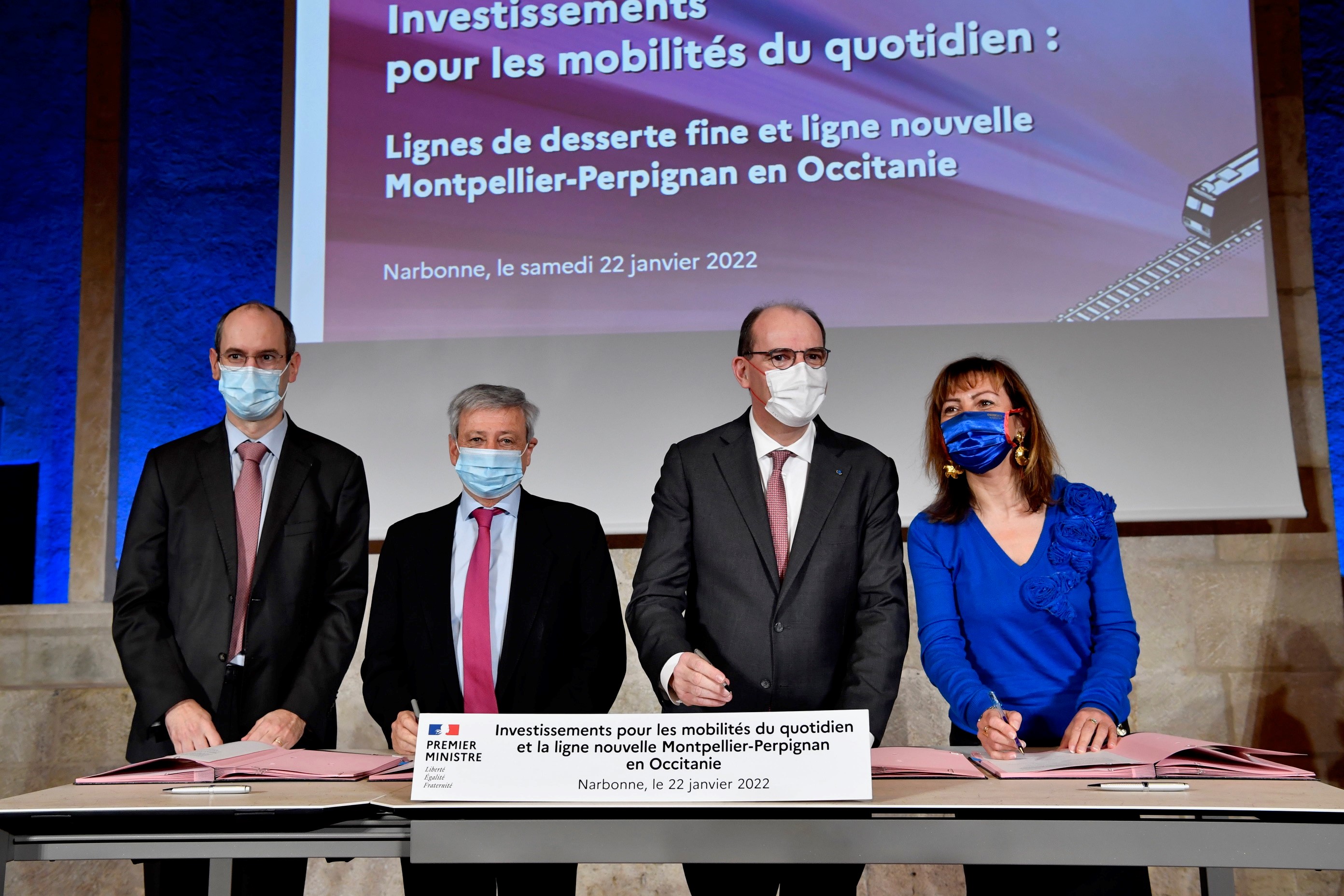 Première signature, celle du protocole d’intention de financement pour la réalisation de la phase 1 de la Ligne nouvelle Montpellier-Perpignan (LNMP). Elle permettra notamment de relier Perpignan à Paris en 4h20 contre 5h10 aujourd’hui. Elle sera également un chaînon important du futur réseau à grande vitesse du sud de la France, avec les lignes Toulouse - Bordeaux et Marseille - Nice. La création de cette ligne nouvelle permettra également d’augmenter le nombre de trains du quotidien sur le littoral ainsi qu’un report modal du trafic fret vers le rail.