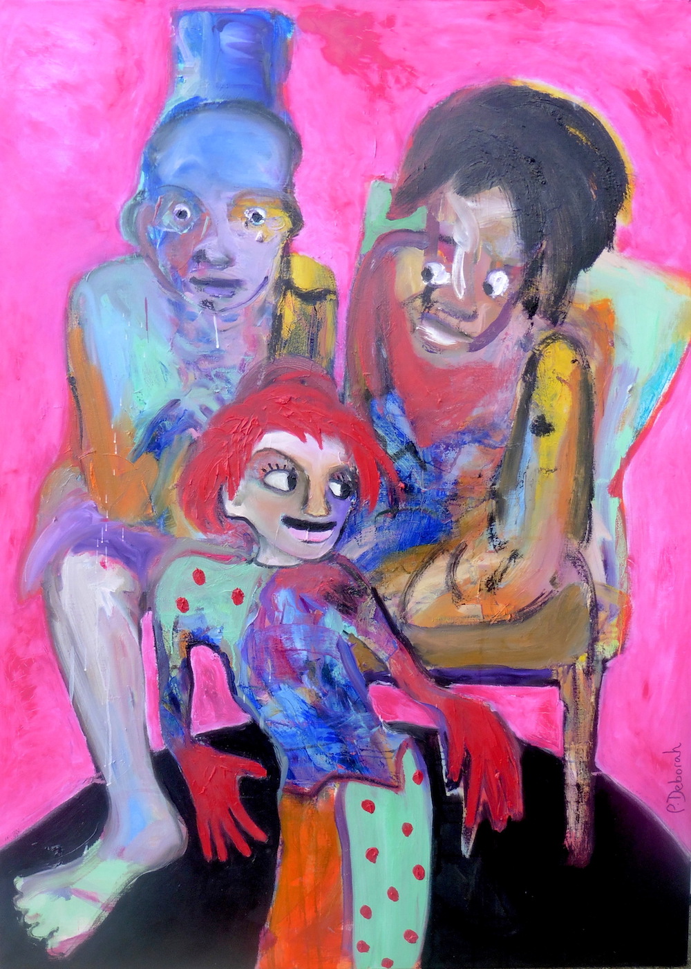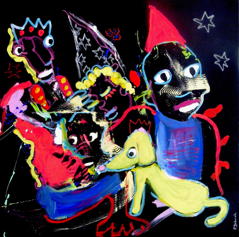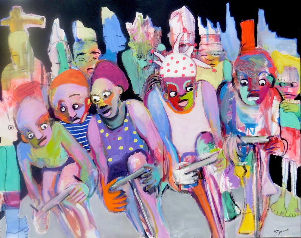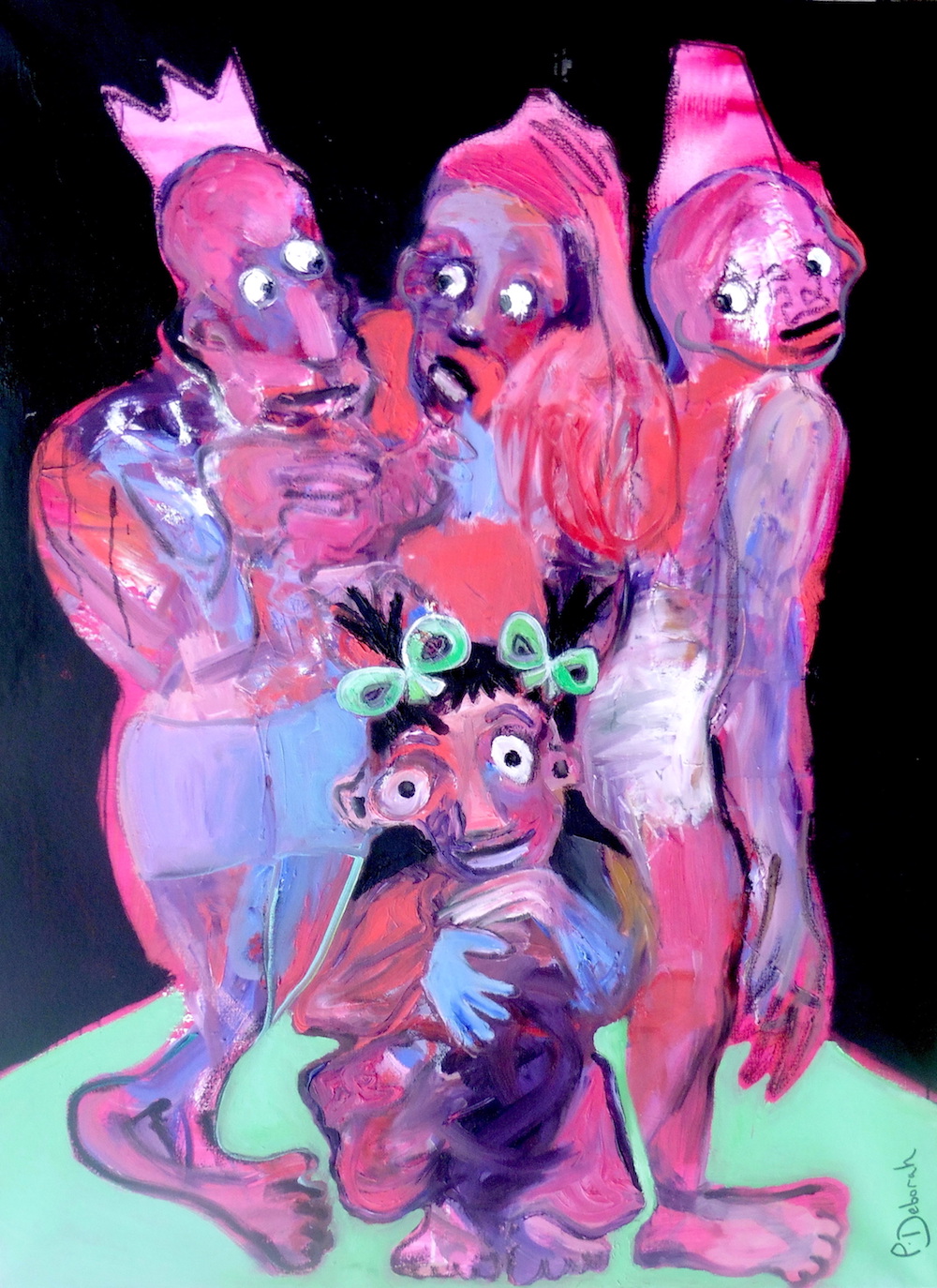 Les couleurs vives et le dynamisme des lignes sont un hymne à la vie. "Mes personnages apparaissent, étranges et familiers, mi-mangas, mi-aborigènes, se rassemblent de façon festive, dansent et honorent la vie. Ma peinture est une invitation au voyage pour tous ceux qui n’osent pas." L’oeuvre de Priscille Deborah s’inscrit dans le prolongement de Bacon ou de Rebeyrolles mais s’inspire aussi des expressionnistes contemporains.