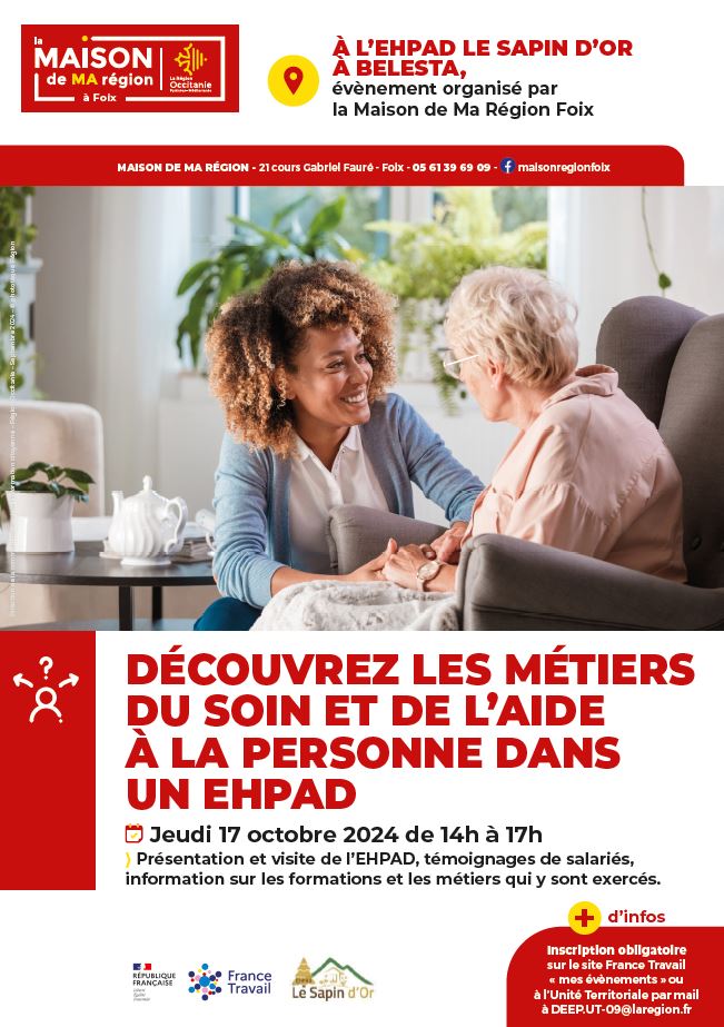 Infos pratiques : Inscription obligatoire sur le site France Travail, rubrique "mes évènements" ou directement par mail à l’Unité Territoriale de l’Ariège : DEEP.UT-09@laregion.fr