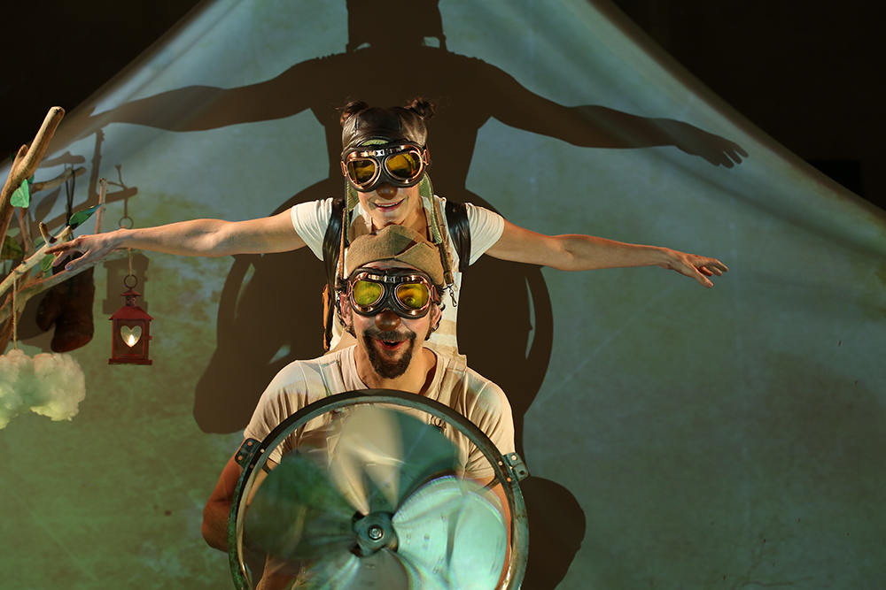 Dans ce spectacle, les comédiens sont au service de l’univers. Le spectacle et la scénographie sont envisagés comme une oeuvre quasi « plastique ». Un arbre « totem » se construit, une vitre sur laquelle on applique de la peinture et projette des images…