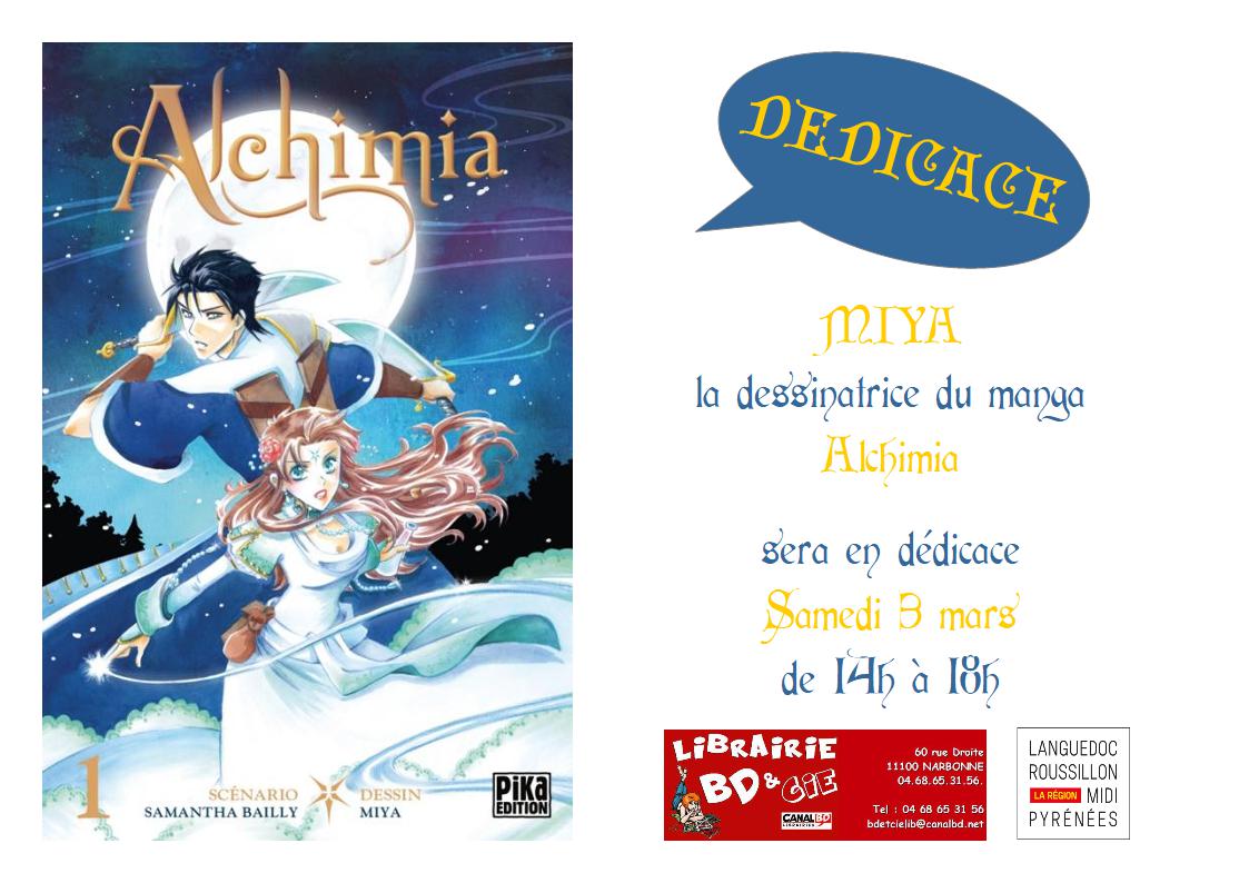 MIYA, la dessinatrice des mangas Alchimia et Vis-à-vis aux éditions Pika, sera en dédicace samedi 3 mars à la librairie BD & Cie de Narbonne de 14h à 18h.