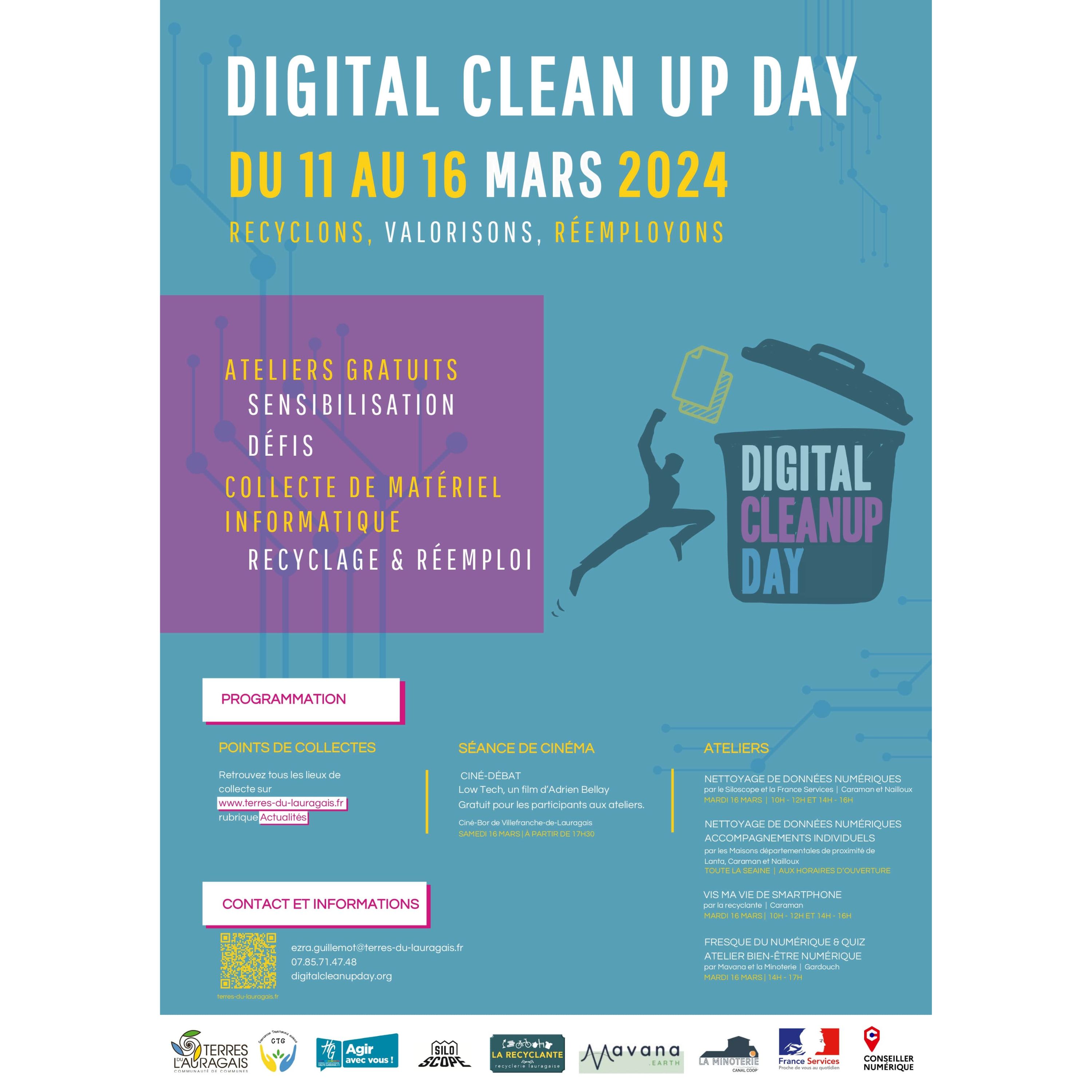 Le Digital Clean Up Day, c’est la journée mondiale de nettoyage numérique. Venez participer à des ateliers de sensibilisation gratuits et/ou déposer du matériel numérique qui dort dans vos placards. Vos téléphones, tablettes, écrans, ordinateurs, tv… seront ainsi revalorisés par Emmaüs connect afin de leur offrir une seconde vie.