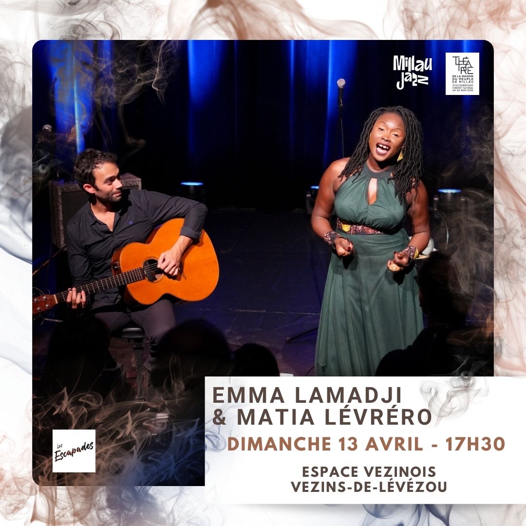 Emma Lamadji, chanteuse franco-centrafricaine, est imprégnée depuis toujours de negro spiritual et de musiques africaines. Grâce à sa une voix profonde et son incroyable présence scénique, elle restitue toute la profondeur et la force des mélodies du répertoire. Avec Matia Levréro, guitariste, compositeur et arrangeur, ils inventent des chansons, laissent libre cours à l’improvisation et jouent sans cesse à se surprendre…