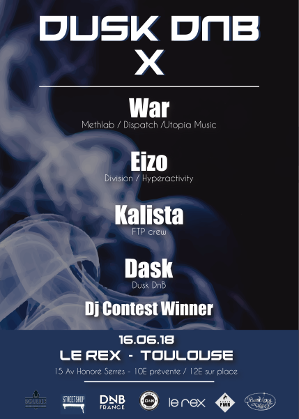 C’est avec un plateau d’artistes français que nous fêterons la dixième édition des soirées DUSK DNB le 16 juin !