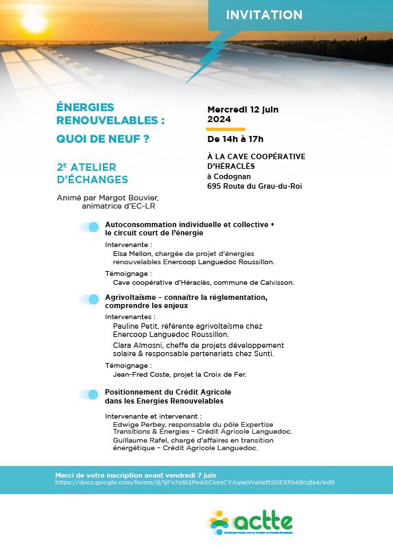 ÉNERGIES RENOUVELABLES : QUOI DE NEUF ? 2E ATELIER D’ÉCHANGES
