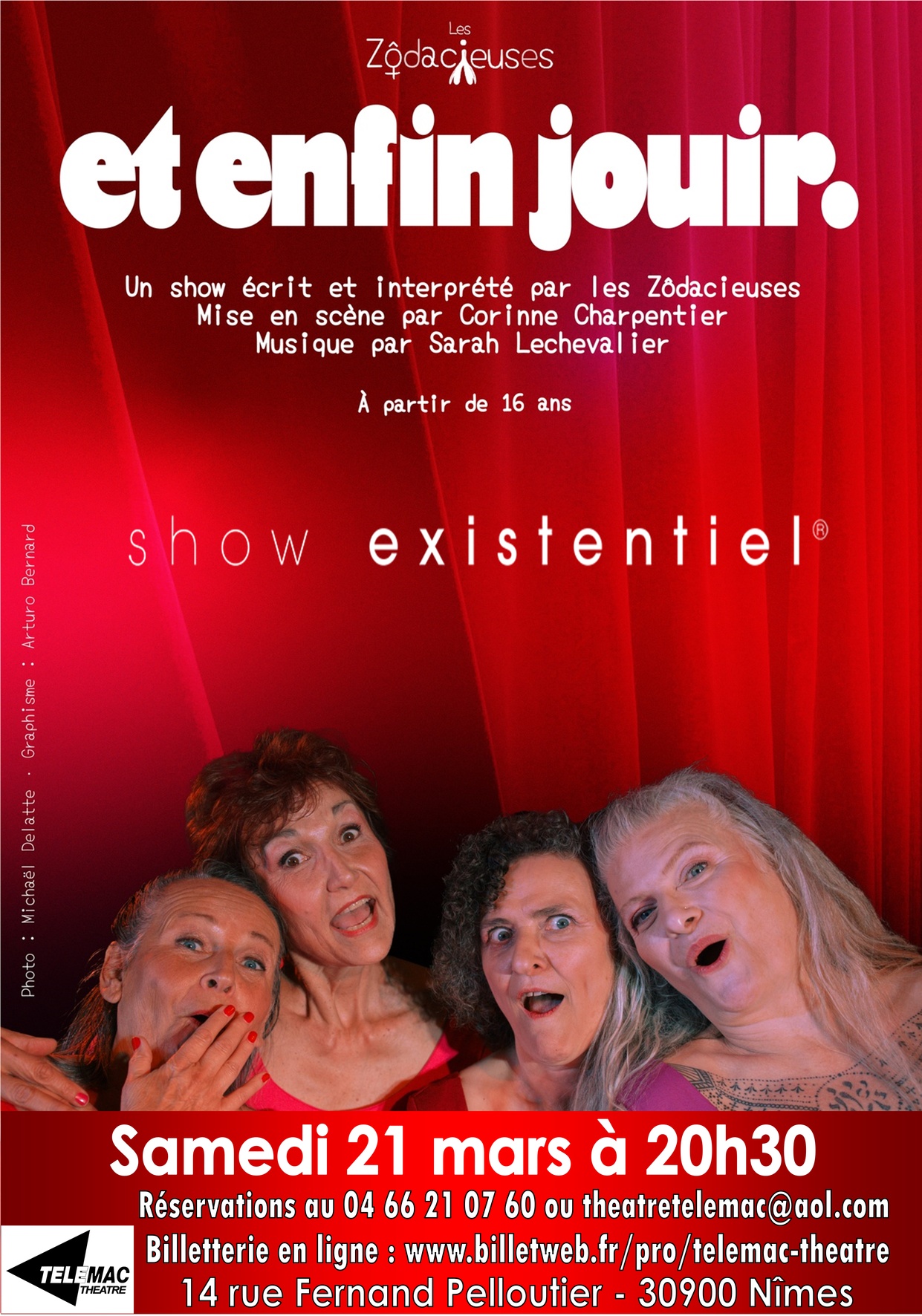 Un show existentiel entremêlant théâtre, humour et chansons des Zodacieuses, interprété par Corinne CHARPENTIER, Marie-Noëlle DELATTE, Sarah LECHEVALIER et Christine SARRAZIN, où 4 femmes se confrontent à leurs paradoxes et leur vulnérabilité de façon poétique et déjantée…