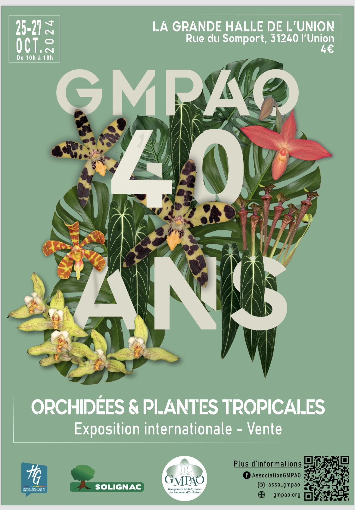 Le Groupement Midi-Pyrénées des Amateurs d’Orchidées (GMPAO) vous donne rendez-vous à l’occasion de sa 10ème exposition-vente internationale d’orchidées qui se tiendra les 25, 26 et 27 octobre 2024 de 10h à 18h, sans interruption, à la Grande Halle, rue du Somport à l’UNION (31240) – TOULOUSE METROPOLE.