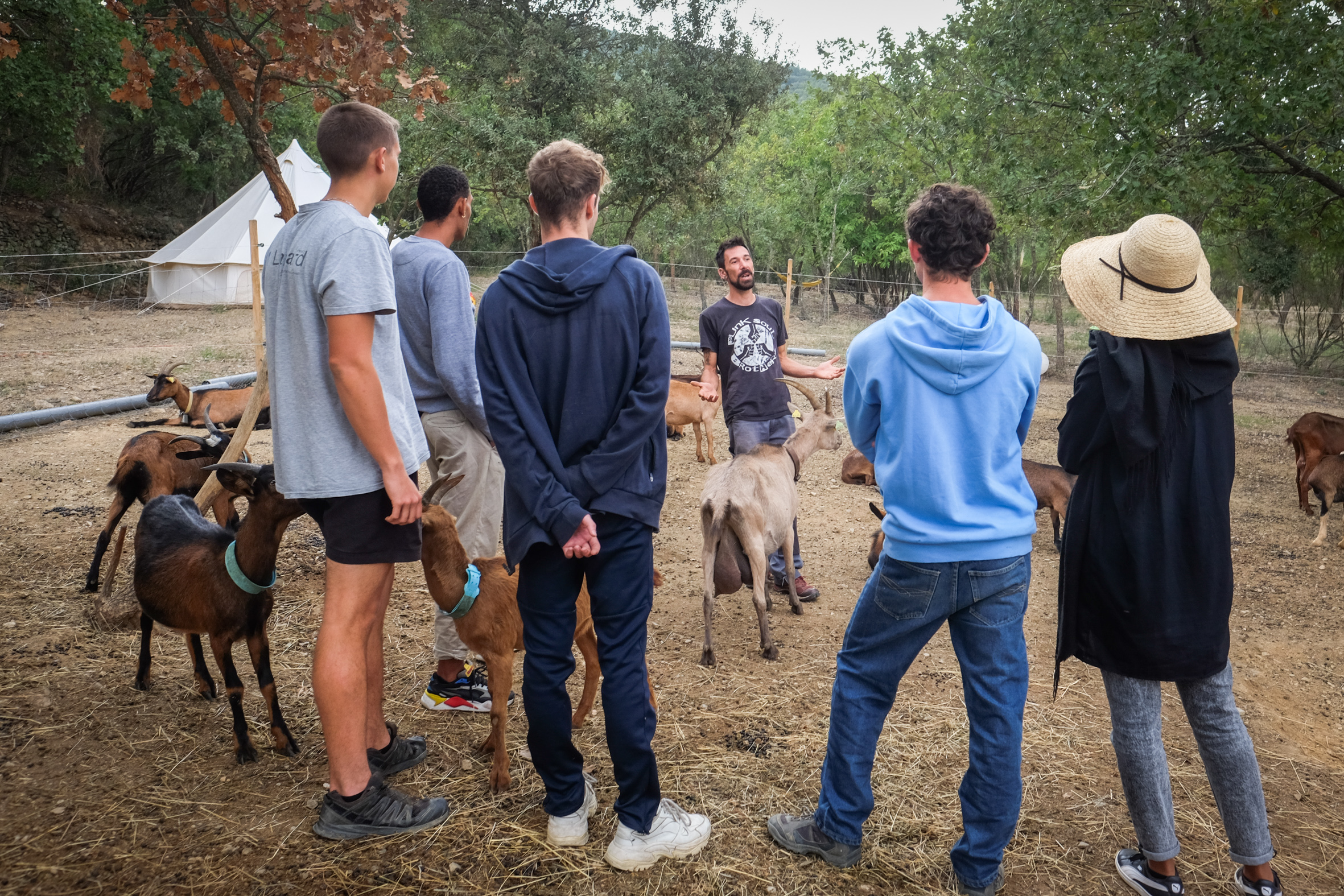L’hôte du jour, David Sira, qui les encadre, a lui aussi cherché sa voie. Après avoir travaillé dans la restauration, il a décidé de passer un BP JEPS et devenir formateur au développement durable. Pour aller au bout de sa démarche, il s’est installé en constituant un troupeau composé d’une trentaine de chèvres, une vingtaine de brebis et cinq ânes à Corbère-les-Cabanes. Depuis, en complément de l’animation, il propose des prestations d’écopâturage.