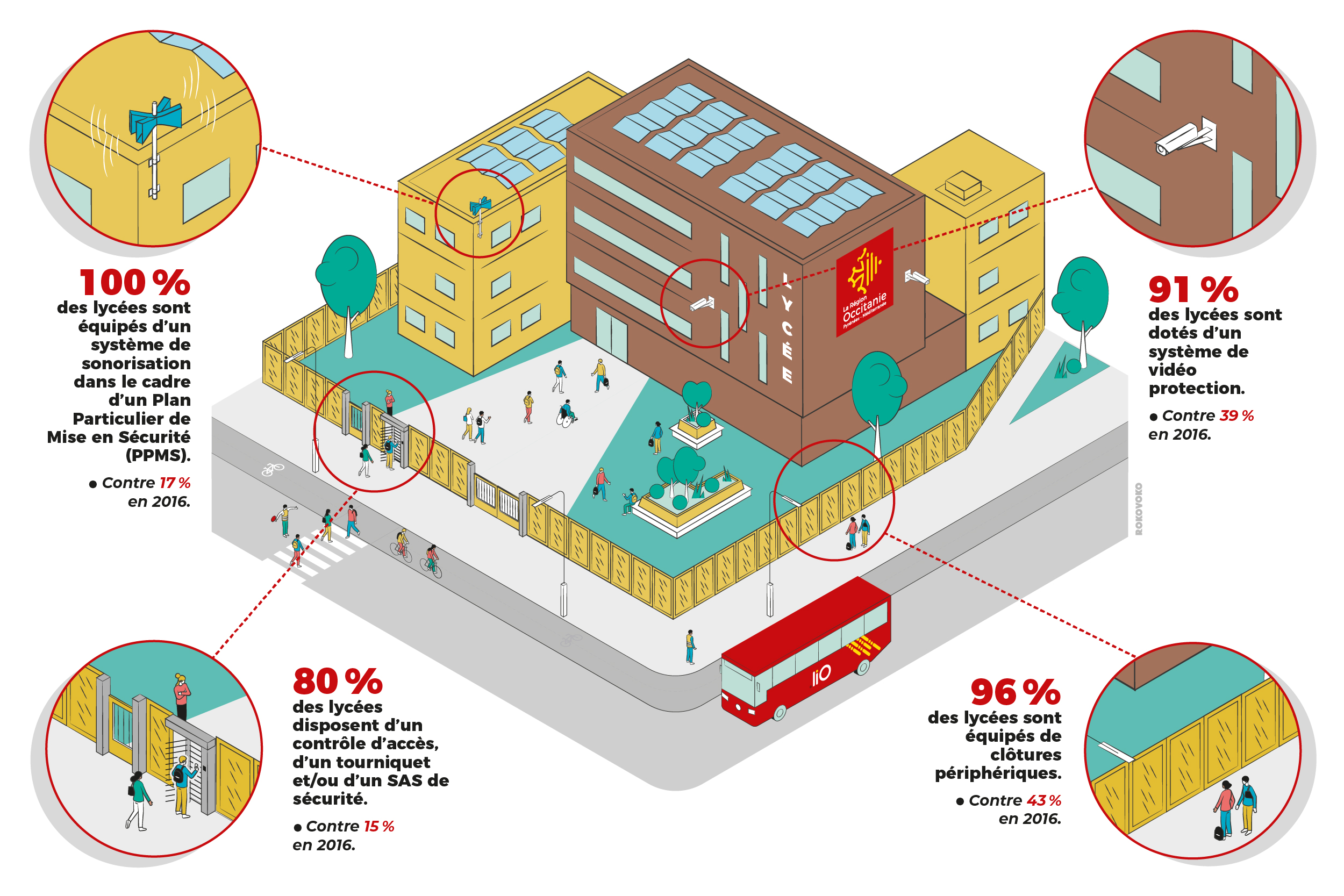 Afin de garantir aux jeunes des conditions d’études confortables et de qualité, l’Occitanie rénove ses lycées pour qu’ils soient plus durables et assure leur sécurisation. Elle leur offre ainsi un cadre scolaire à la fois sûr, moderne et performant.
