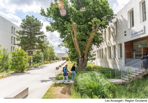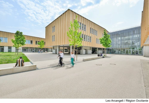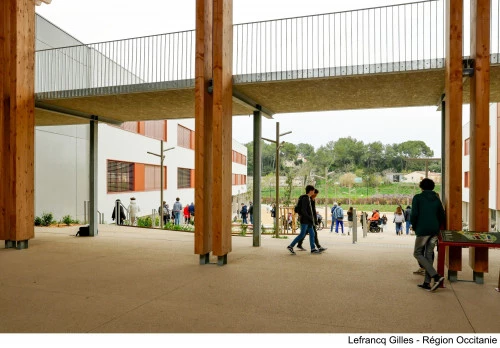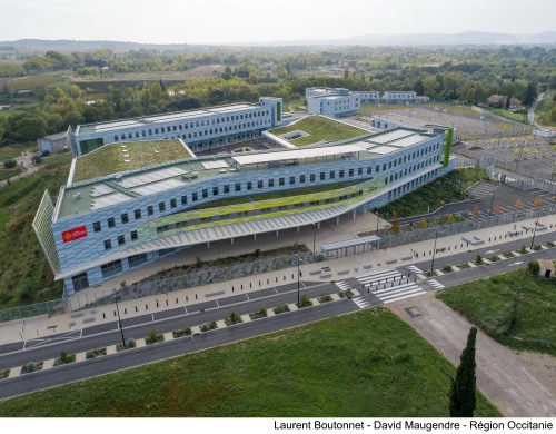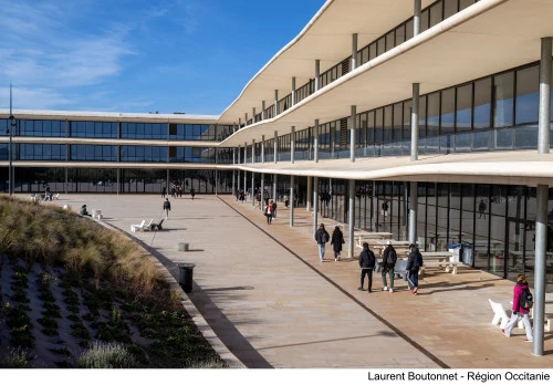La Région maintient par ailleurs ses investissements dans ses lycées publics, avec un budget de 800 M€ pour 2021-2027. Un quart de ses efforts est consacré à la rénovation énergétique [4]. Plus de 60 chantiers d’extension et de restructuration sont en cours sur tout le territoire : Rosa Luxemburg à Canet-en-Roussillon (Pyrénées-Orientales), Léon Blum à Villefranche-de-Lauragais (Haute-Garonne), Jean-François Champollion à Lattes (Hérault)… Une attention particulière est aussi portée sur la mise en accessibilité des bâtiments.