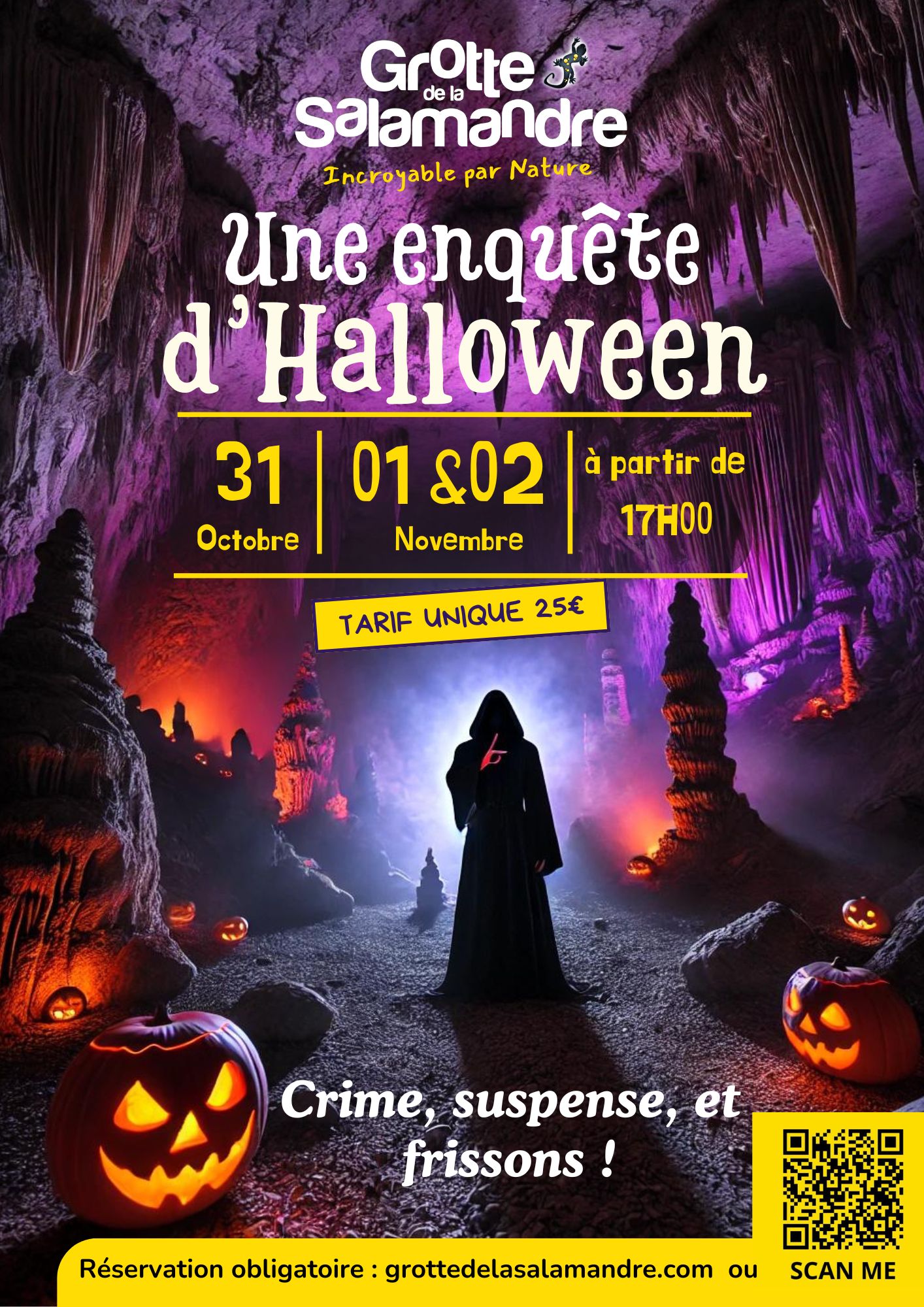 Les 31 Octobre, 01 & 02 Novembre, résolvez le mystère de la Grotte ! Passionné d’enquêtes et prêt à affronter la malédiction qui pèse sur la Grotte ? Incarnez un détective paranormal et élucidez la mort énigmatique d’un célèbre spéléologue. Munis d’indices, plongez au cœur d’une intrigue captivante pour démasquer le coupable… mais méfiez-vous des mystères qui se cachent dans l’ombre !