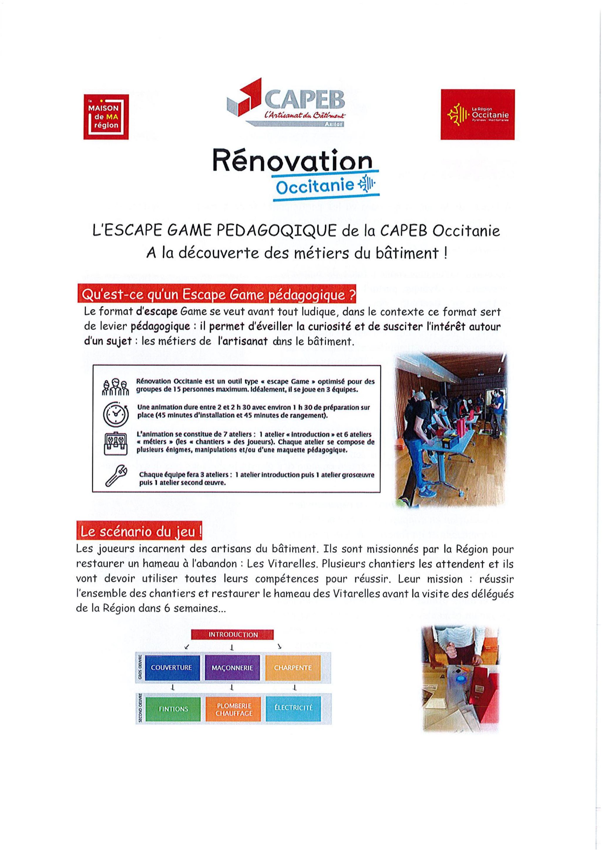 La CAPEB Ariège et la Maison de Ma Région de Foix vous proposent de découvrir la diversité des métiers du bâtiment de façon ludique sous la forme innovante d’un Escape Game