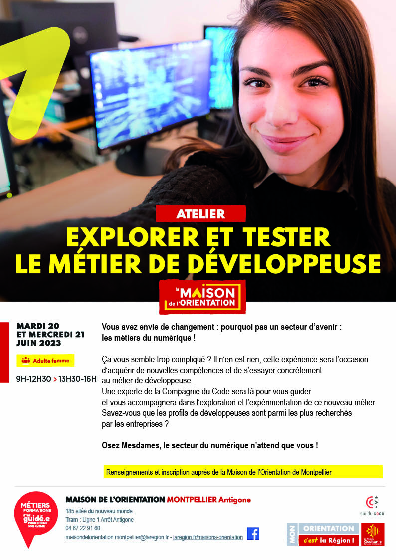 Une experte de la Compagnie du Code sera là pour vous guider et vous accompagnera dans l’exploration et l’expérimentation de ce nouveau métier.