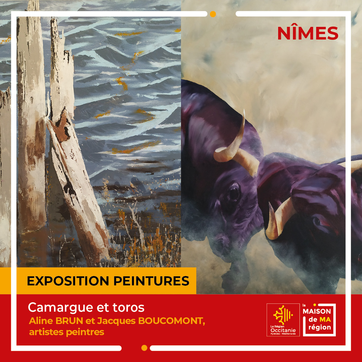 A l’occasion de la feria des vendanges, Aline BRUN et Jacques BOUCOMONT, artistes peintres, vous proposent une exposition intitulée “Camargue et toros”
