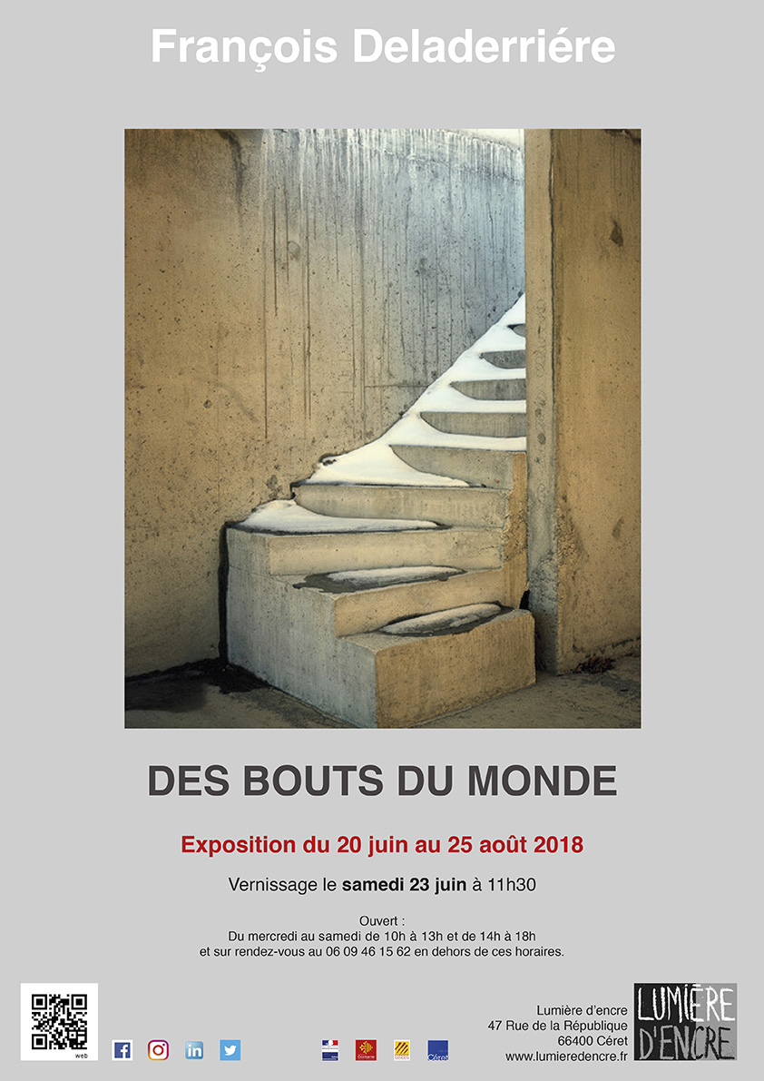 François Deladerrière est né en 1972, il vit et travaille à Arles. Diplômé de l’Ecole Nationale de Photographie d’Arles en 1999, il poursuit aujourd’hui un travail personnel et réalise des commandes portant essentiellement sur le paysage et l’architecture. Il présente régulièrement ses photographies lors d’expositions collectives et personnelles.