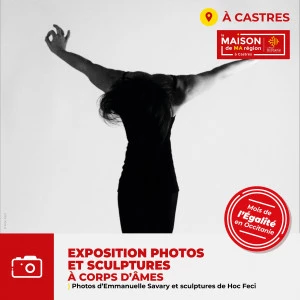 Dans le cadre du mois de l’Egalité en Occitanie, la Maison de Ma Région à Castres vous propose sa prochaine exposition "À CORPS D’ÂMES", photos d’Emmanuelle Savary et sculptures de Hoc Feci, qui aura lieu du 3 au 28 mars 2025.