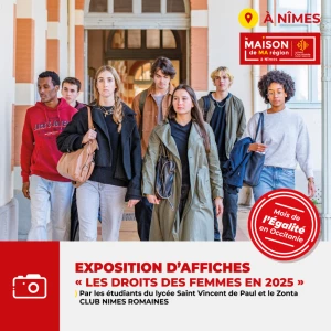 Dans le cadre du mois de l’égalité en Occitanie, La Maison de Ma Région à Nîmes organise, du 3 au 10 mars, une exposition intitulée « Les droits des femmes en 2025 » proposée par les étudiants du lycée Saint Vincent de Paul à Nîmes, et le ZONTA Club Nîmes Romaines.