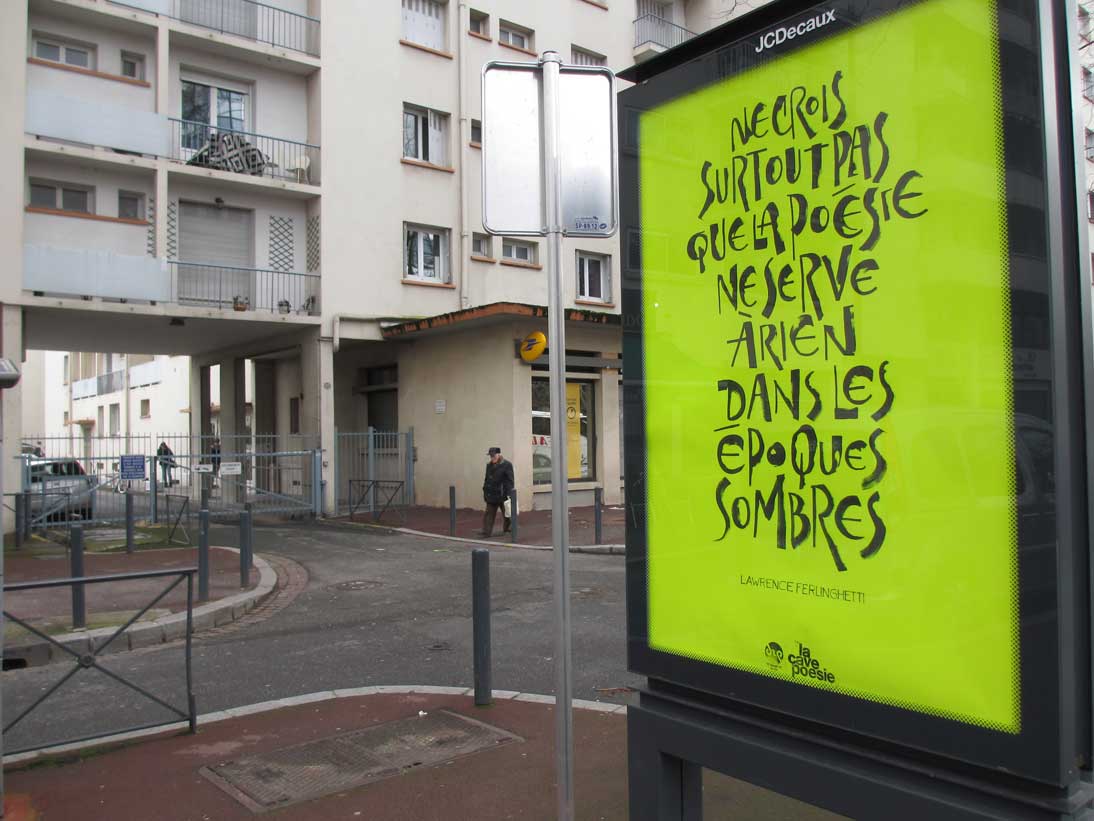 En 2016, l’artiste Thomas Deudé conçoit dix affiches à partir de phrases de poètes contemporains pour « La Poésie est dans la rue », une initiative de la Cave Poésie.