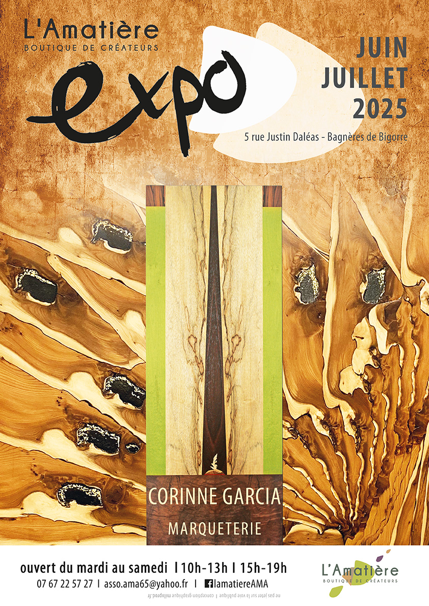 La boutique de créateurs l’Amatière, installée au 5 rue Justin Daléas à Bagnères de Bigorre, reçoit Corinne Garcia, marqueterie, de juin à juillet.