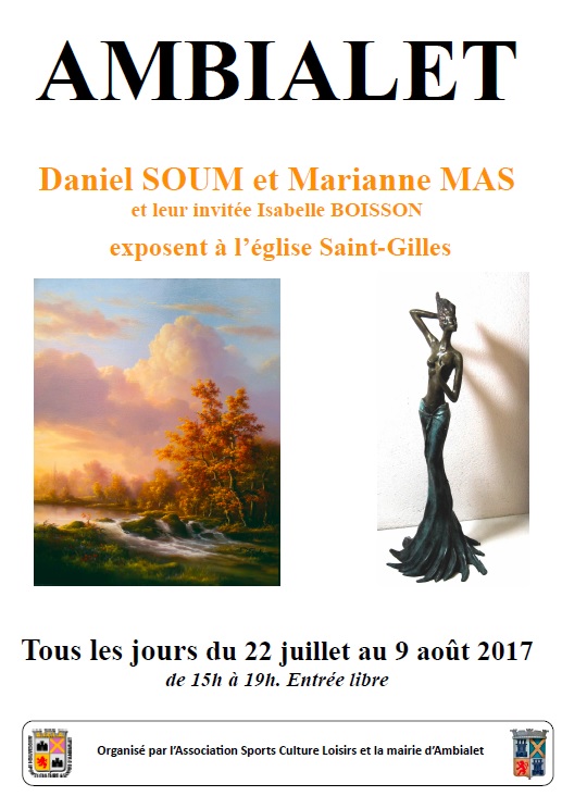 Exposition de l’artiste-peintre Daniel Soum et de la sculptrice Marianne Mas en l’église St Gilles d’Ambialet du 22 juillet 2017 au 9 août de 15 h à 19 h