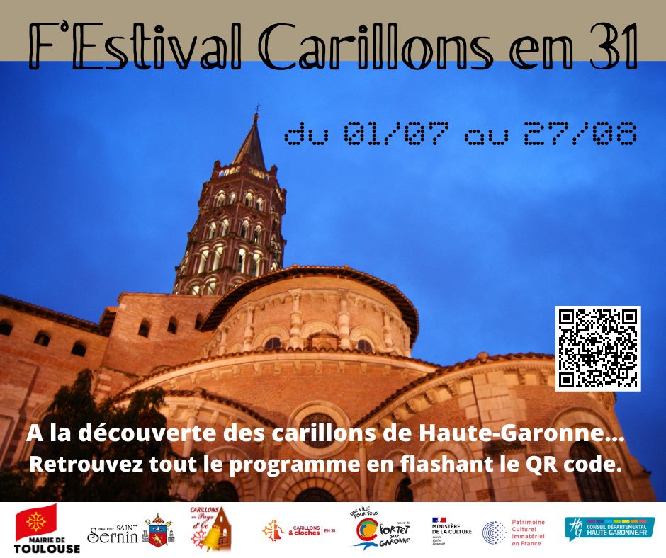 Le F’Estival Carillons en 31 se déroule du 1er juillet au 27 août 2023 sur tout le territoire de la Haute-Garonne grâce, entre autre, au soutien de Conseil Départemental de la Haute-Garonne et de la commune de Toulouse.