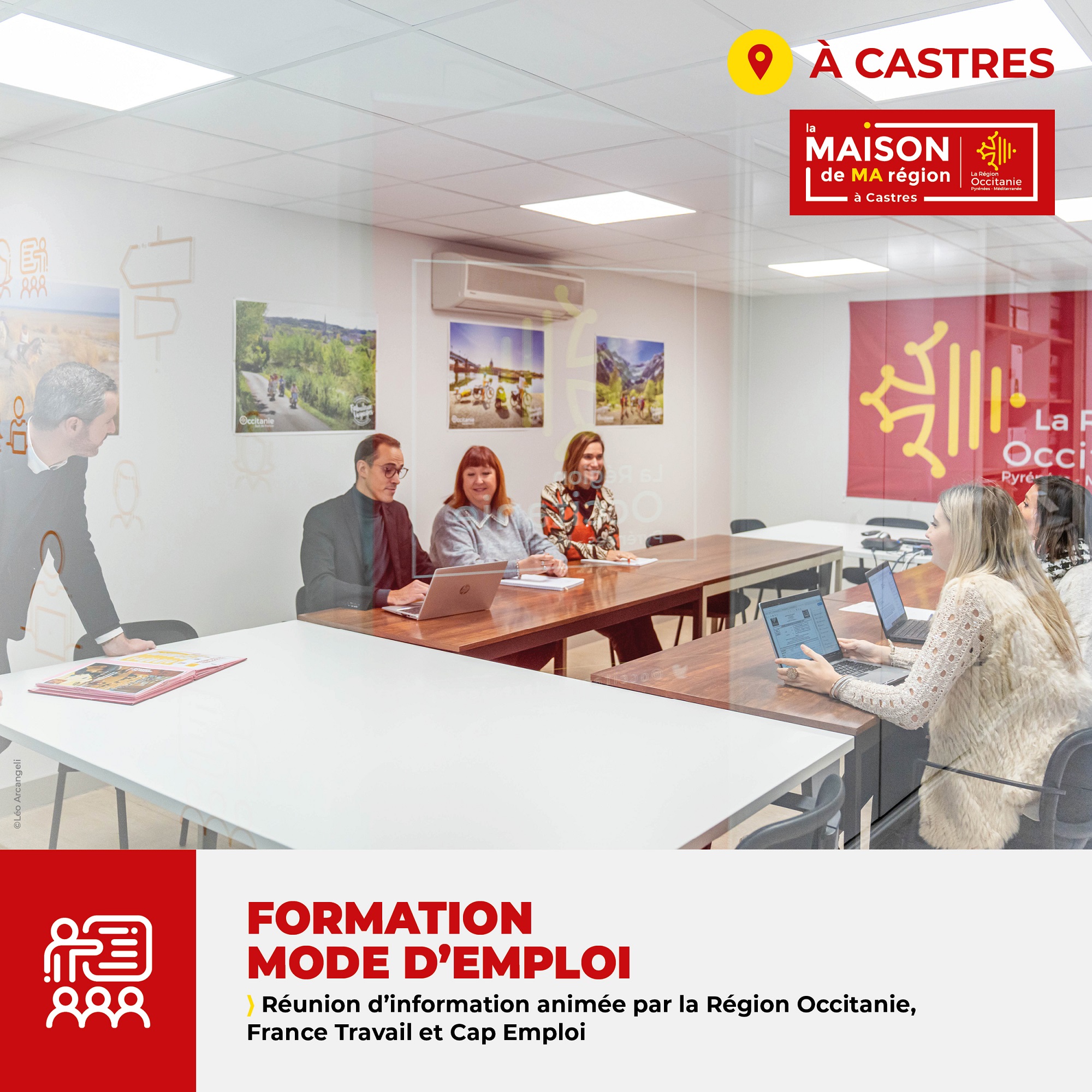 Choisir une formation, comment la trouver, comment sera t-elle financée, y ai je droit ? La Maison de ma Région Castres vous propose des réunions d’information sur la thématique "Formation mode d’emploi", animées par France Travail, Cap Emploi et la Région Occitanie.