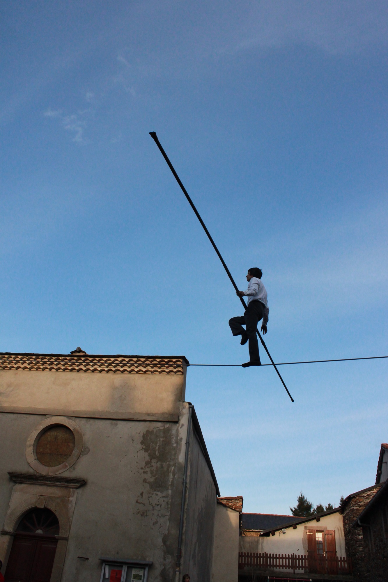 Tout ce à quoi vous allez assister a longtemps été mûri, comme un vin dans son fût. C’est le résultat d’un travail précis, ciselé, où rien n’a été laissé au hasard car la moindre erreur pourrait avoir des conséquences énormes. Cette forme courte propose un moment suspendu, à 5 m du sol, où la peur et le plaisir se côtoient. C’est un moment au rythme du fil, lent, calme, qui permet de prendre le temps de redécouvrir ce qui nous entoure avec un regard neuf. Une expérience, préparée avec soin mais qui finalement est à chaque fois nouvelle, puisque vous êtes là.