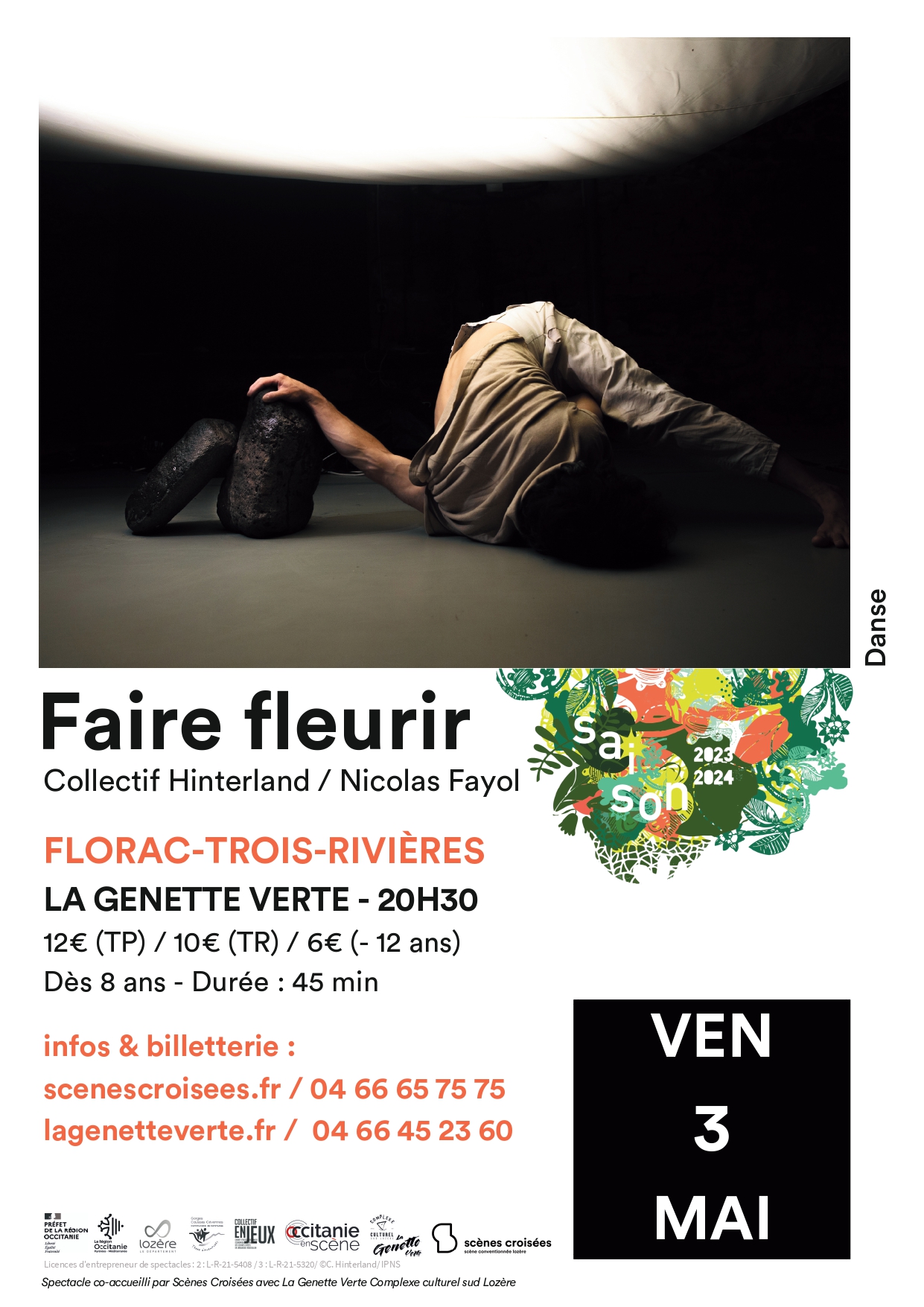 Après une résidence de création immersive au Domaine départemental de Boissets en mai 2022, où les artistes ont puisé leur inspiration dans les causses et les grottes, Faire fleurir voit enfin le jour. Nicolas Fayol, danseur émérite au parcours éclectique, guide le public à travers un voyage où les frontières entre les styles se dissipent. Rompu à la technique break, Nicolas Fayol a enrichi son art en explorant la danse hip-hop avant d’intégrer l’École Internationale de Danse Jazz à Paris pour explorer de nouvelles formes de technicité. Son expérience en tant qu’interprète pour des chorégraphes renommés tels que Bruno Geslin et Christian Rizzo, combinée à sa pratique de l’image et de la vidéo, donne naissance à une œuvre chorégraphique riche et immersive.