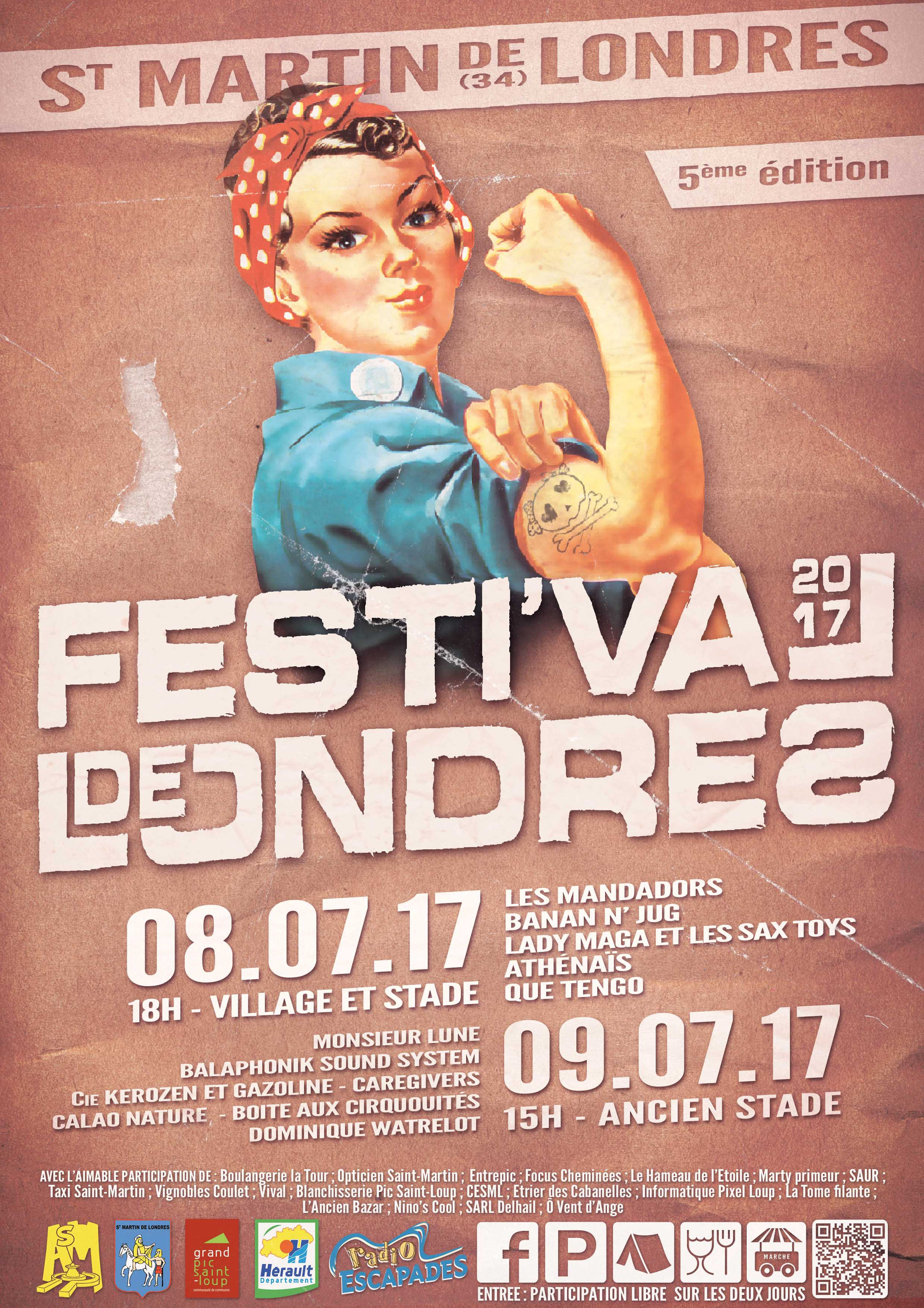 Le festival reçoit le soutien de la Commune de Saint-Martin-de-Londres, de la Communauté de communes du Grand Pic Saint-Loup, du Conseil Départemental de l’Hérault (via l’ARTDA) et de nombreuses structures (commerces, entreprises…) de Saint Martin de Londres, mais aussi de tout le territoire du Grand Pic Saint Loup, qui participent financièrement à l’événement.