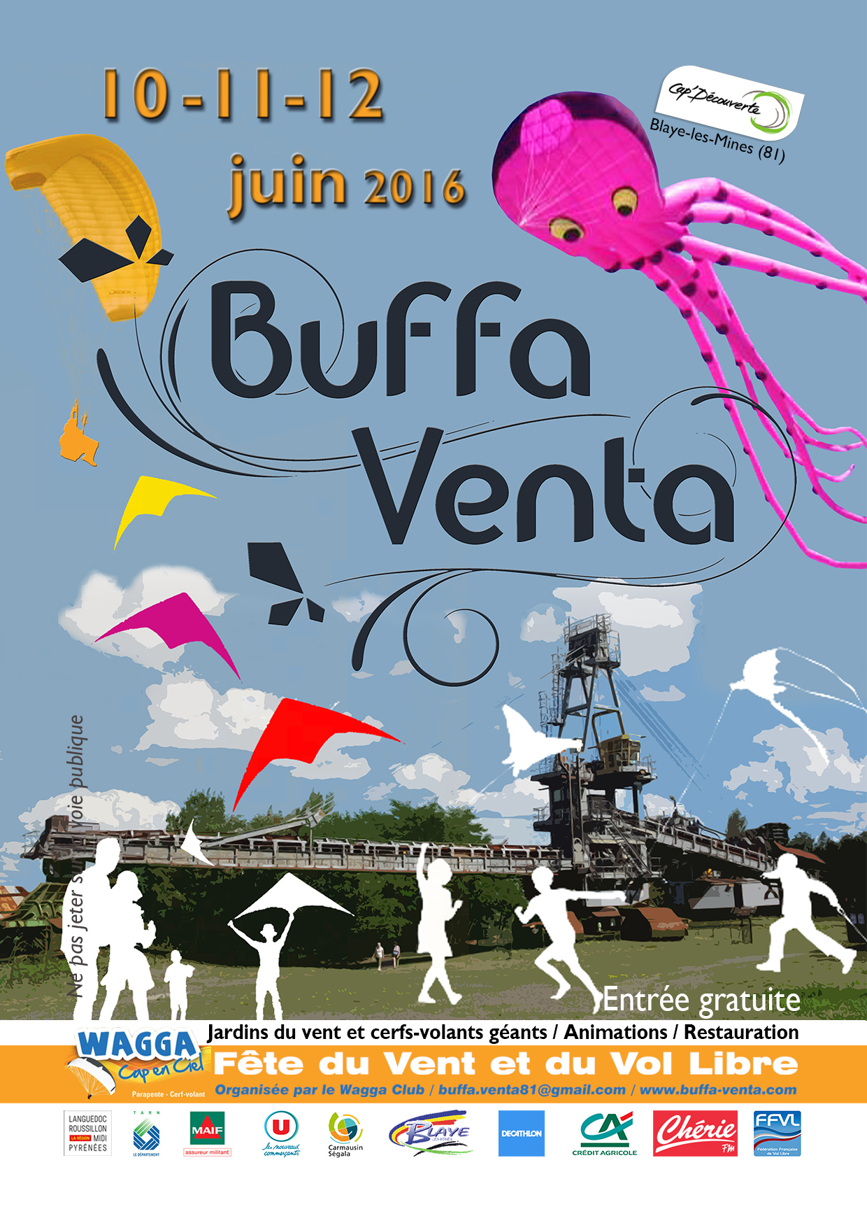C’est une fête du vent organisée chaque 2 ans par le Wagga Club de Parapente de Blaye les Mines. Il rassemble sur un site splendide des animations autour de l’air, du vent, des énergies renouvelables.