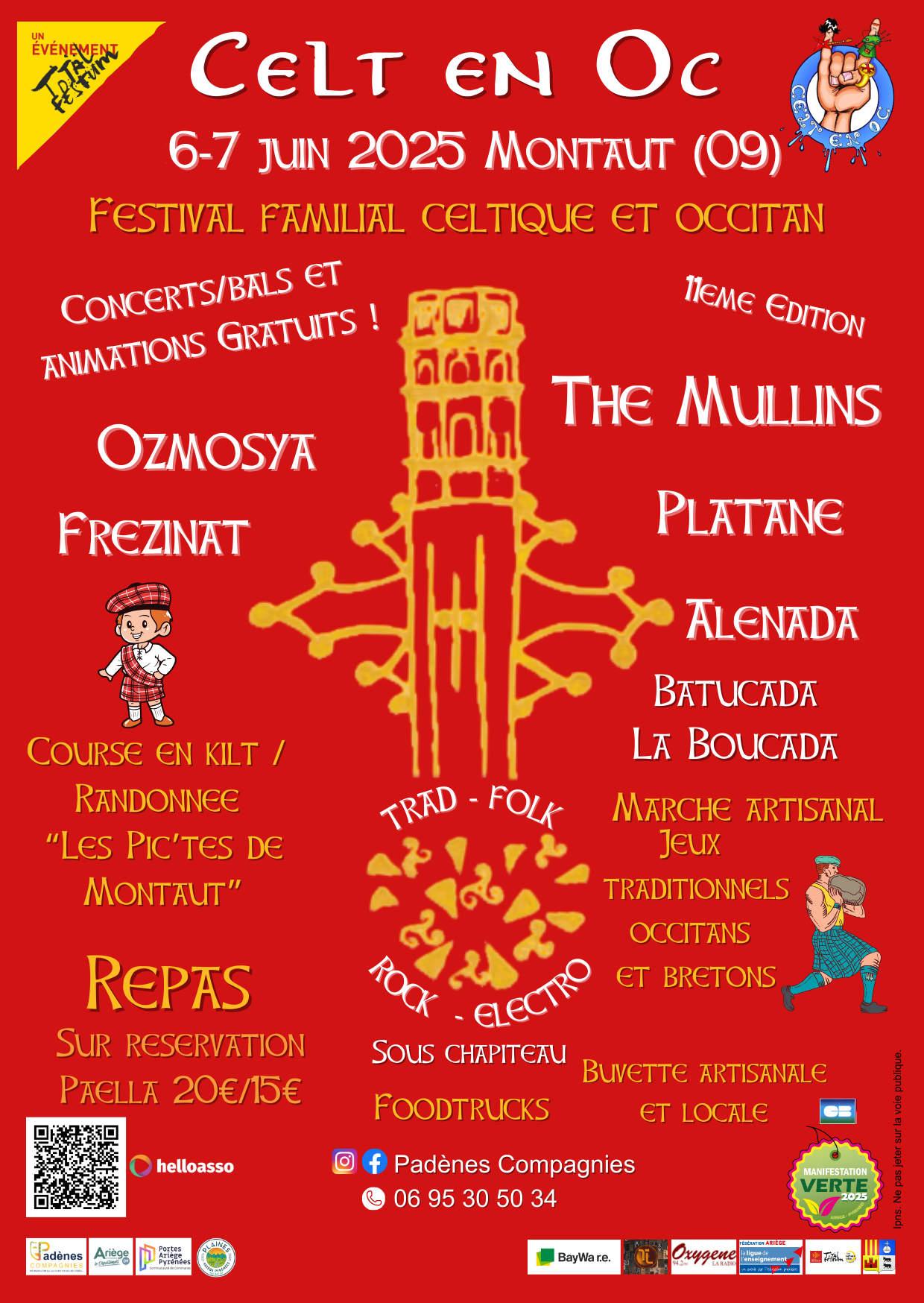 Pour sa 11eme édition, le festival Celt en Oc vous propose une course/randonnée en kilt, des jeux traditionnels occitans et bretons, un marché artisanal, un concert dans l’église, un repas (paëlla, croustade), des concerts/balètis !