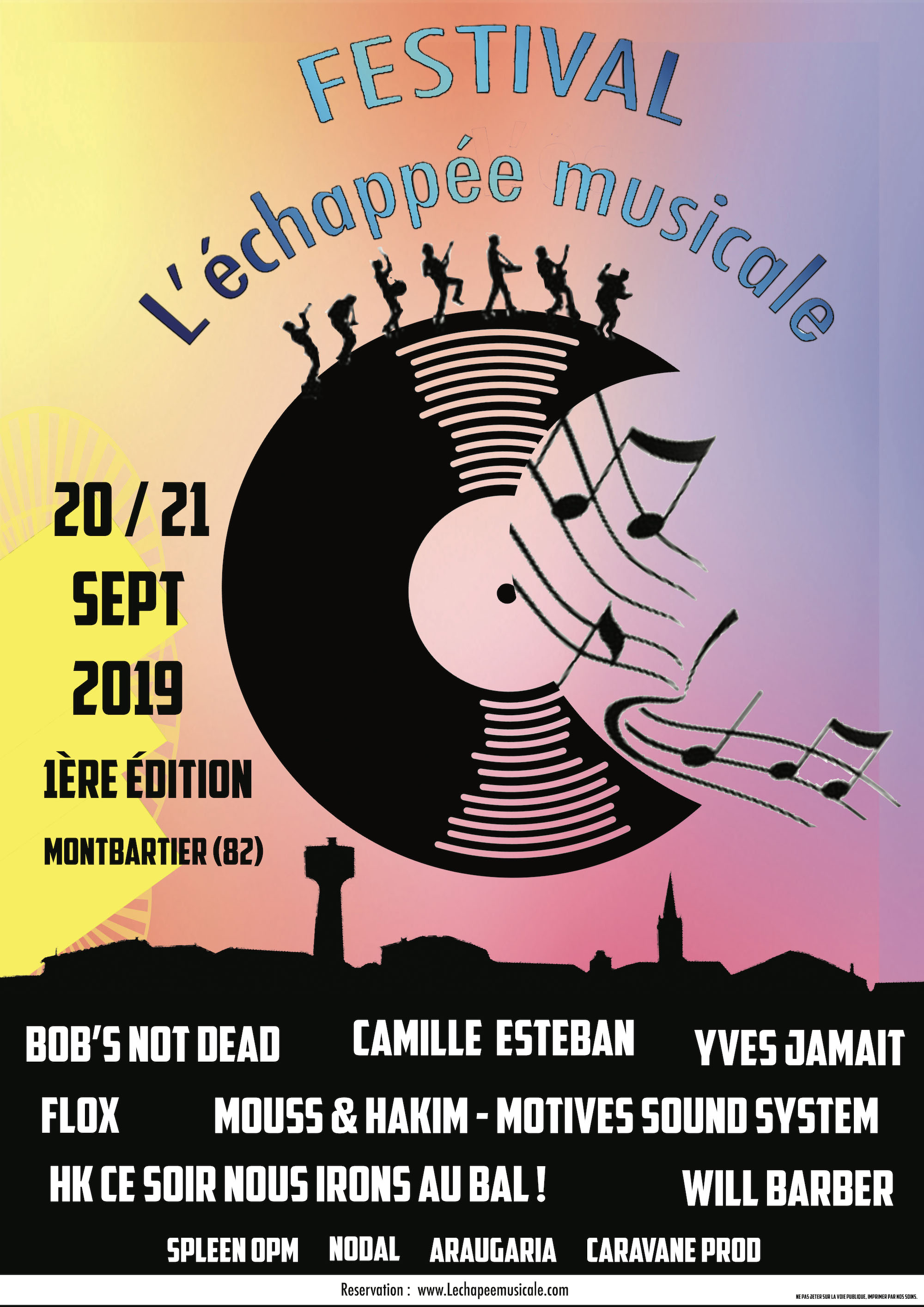 Première édition du festival L’Echappée Musicale le 20 et 21 Septembre 2019 à Montbartier (82) avec le vendredi soir : Bob’s Not Dead, Flox, Mouss et Hakim (les Motivés, Zebda) et HK le saltimbank.