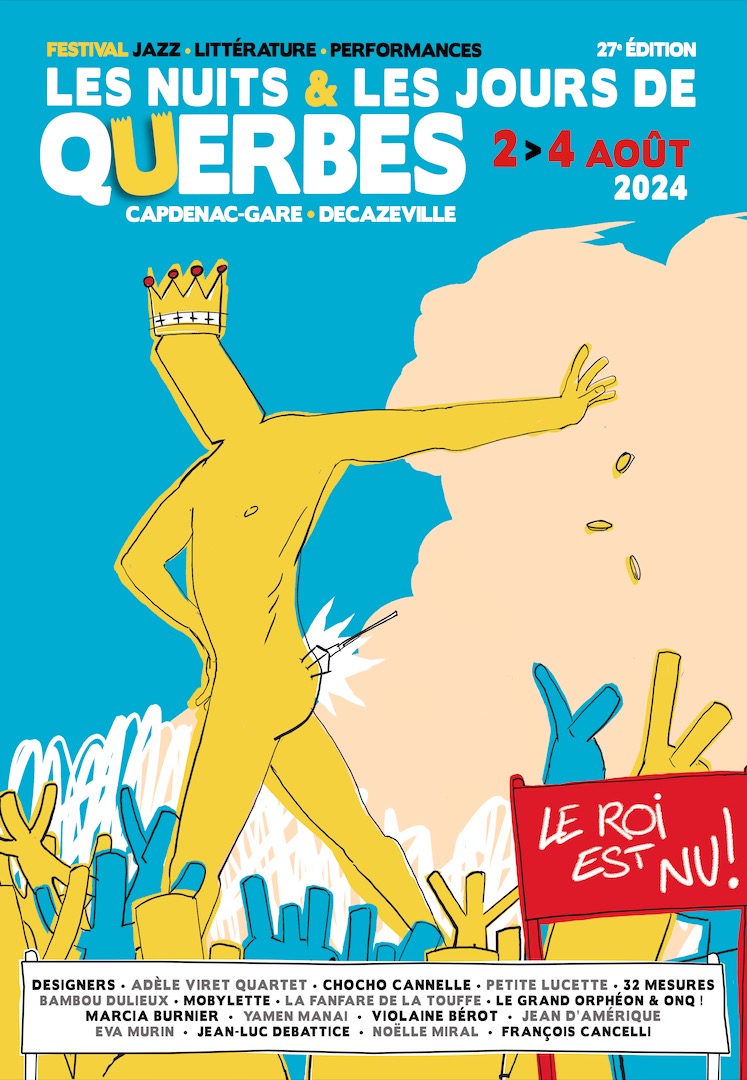 Venez écouter le meilleur du jazz d’aujourd’hui, les comédiens lire à haute voix, venez dialoguer avec les écrivains invités, interroger, autour du thème « Le roi est nu ! », la fascination pour la puissance et le pouvoir. Venez feuilleter les ouvrages à la librairie du festival, demander une dédicace, prendre un café, une bière, assister au spectacle jeune public, suivre le stage musical, participer à une fanfare sans connaître la musique, venez simplement pour vous étendre un moment dans l’herbe et savourer un peu de temps hors du temps !