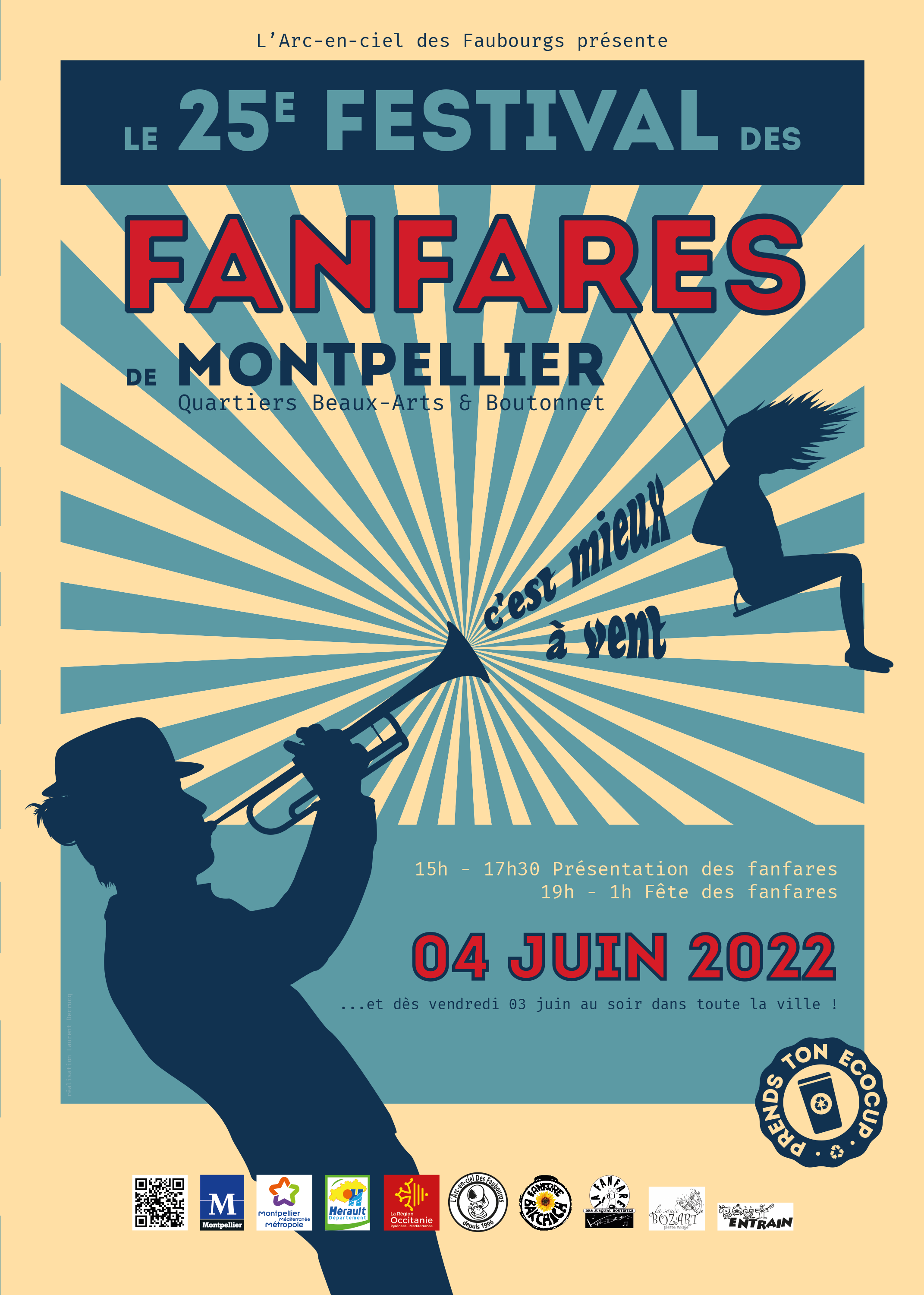 L’association L’Arc-en-ciel des Faubourgs a le plaisir de vous convier à la 25e édition du Festival des Fanfares de Montpellier, le vendredi 3 Juin et le samedi 4 Juin 2022.