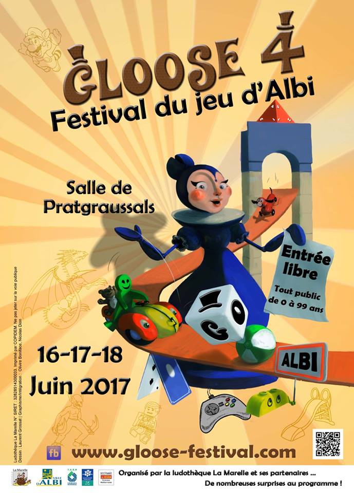 Le Festival du Jeu d’Albi (de son petit nom ’Le Gloose’) vous invite chaleureusement à sa 4ème édition ! Elle aura lieu les 16, 17 et 18 juin 2017 à la Salle de Pratgraussals à ALBI.