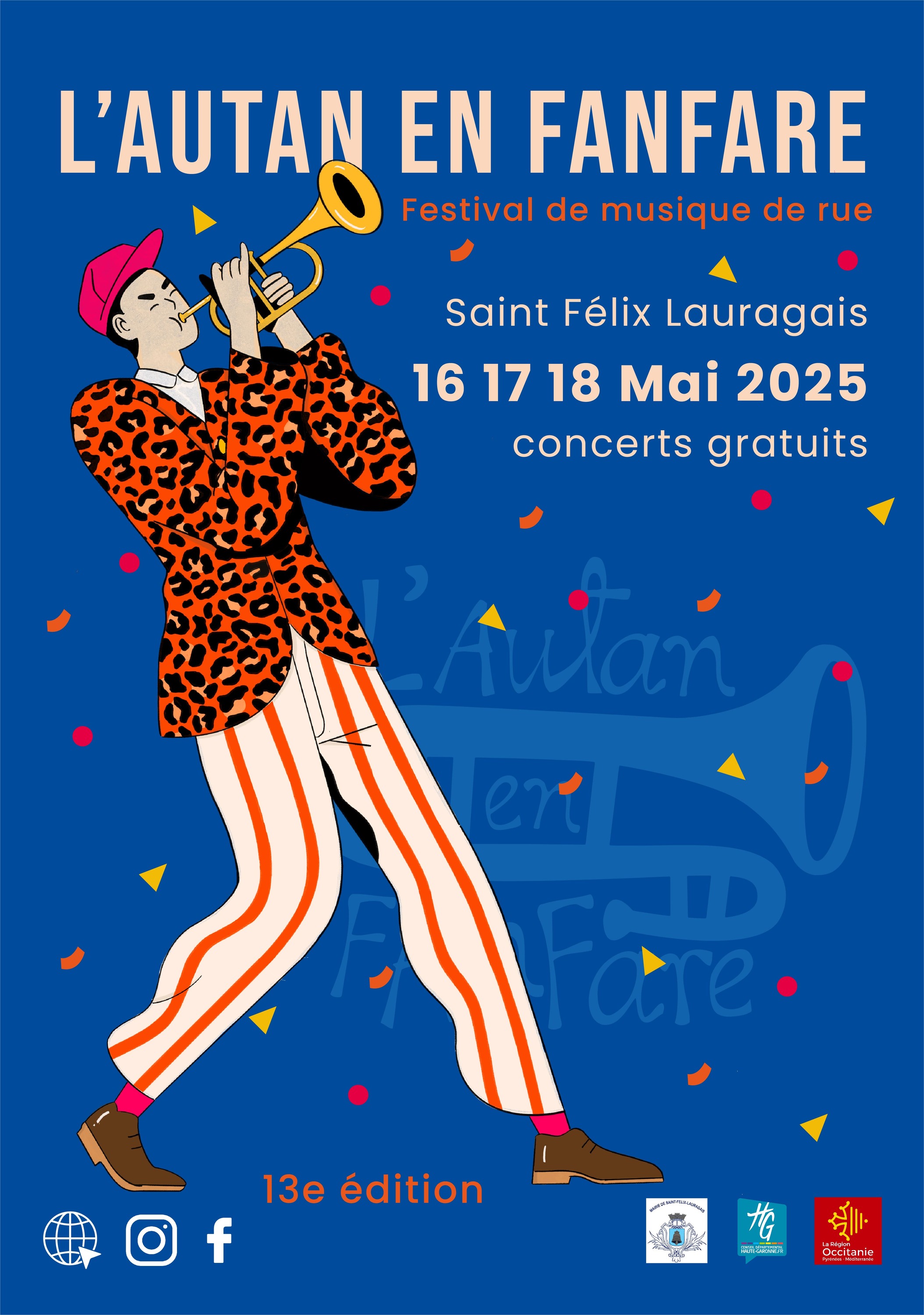 L’Autan en Fanfare revient du 16 au 18 mai 2025 à Saint Félix Lauragais pour sa 13e édition. Le fil conducteur du festival est de proposer une rencontre entre des musiciens venant de toute la France et le public du Lauragais. Convivialité, échange, esprit bon enfant et festif sont la finalité de ce rendez-vous. Le spectacle offert par ces fanfares festives est destiné au public de toutes les générations : fêtard, familial, jeune et moins jeune, amoureux de la fête. 7 fanfares et plus de 100 musiciens convergeront de Lille, Lyon, Marselle, Nantes, Bordeaux, et Rodez pour venir découvrir notre village perché sur les collines du Lauragais.