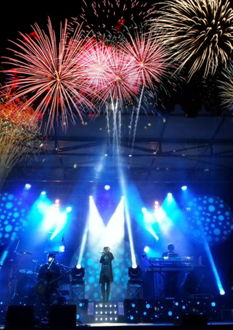 Feu d’artifice au bord du canal, à la tombée de la nuit