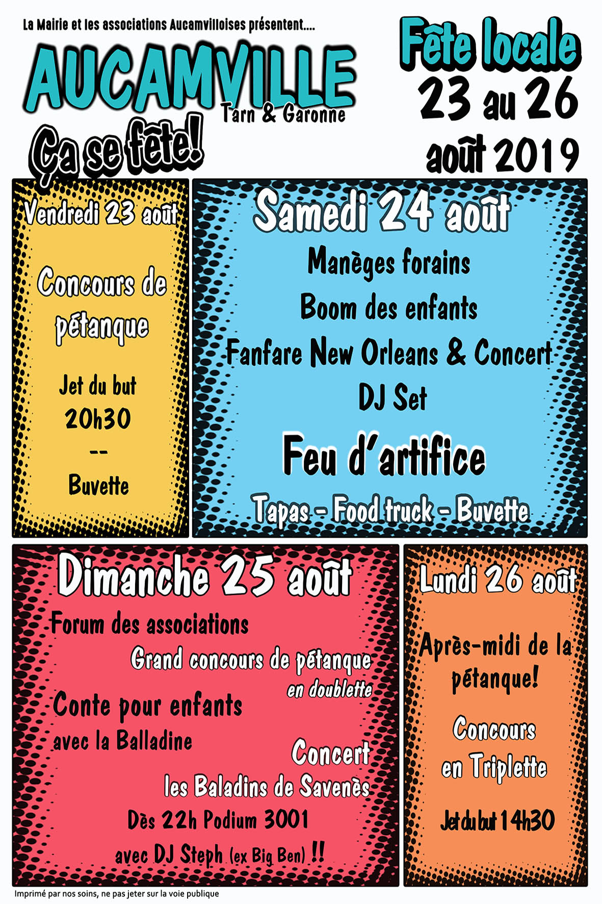 Cette année, c’est l’asso Marguest’Ô Live qui propose la fête locale ! En partenariat avec la pétanque aucamvilloise, la Mairie d’Aucamville-82 et les assos aucamvilloises, voici le programme des festivités !