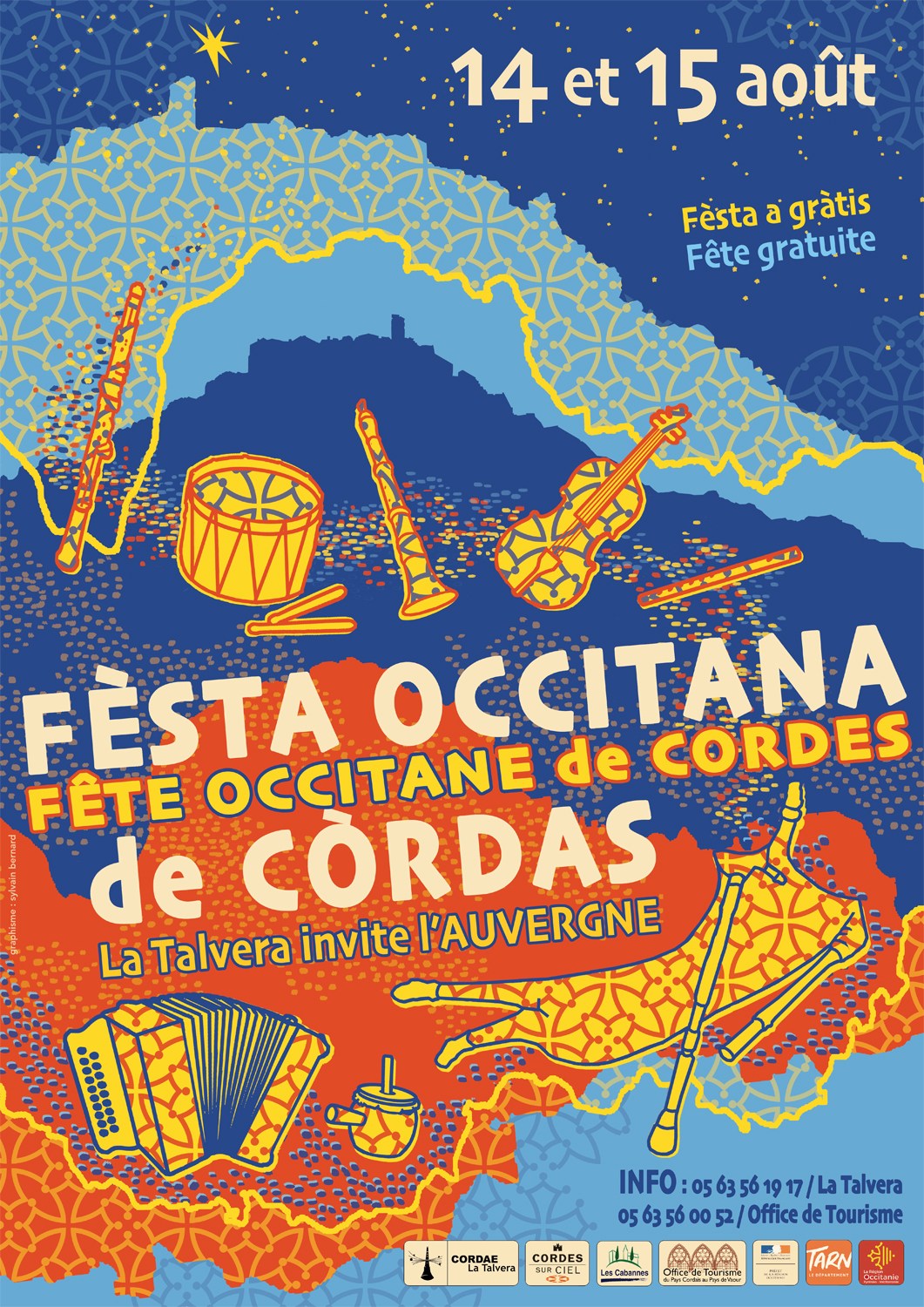 Cette année, la Talvera invite l’Auvergne pour la fête occitane du 14 et 15 août. Venez découvrir les duos Ricros/Felgines, Bourenne, le conteur Didier Huguet et bien d’autres invités dans les rues et places de la ville.