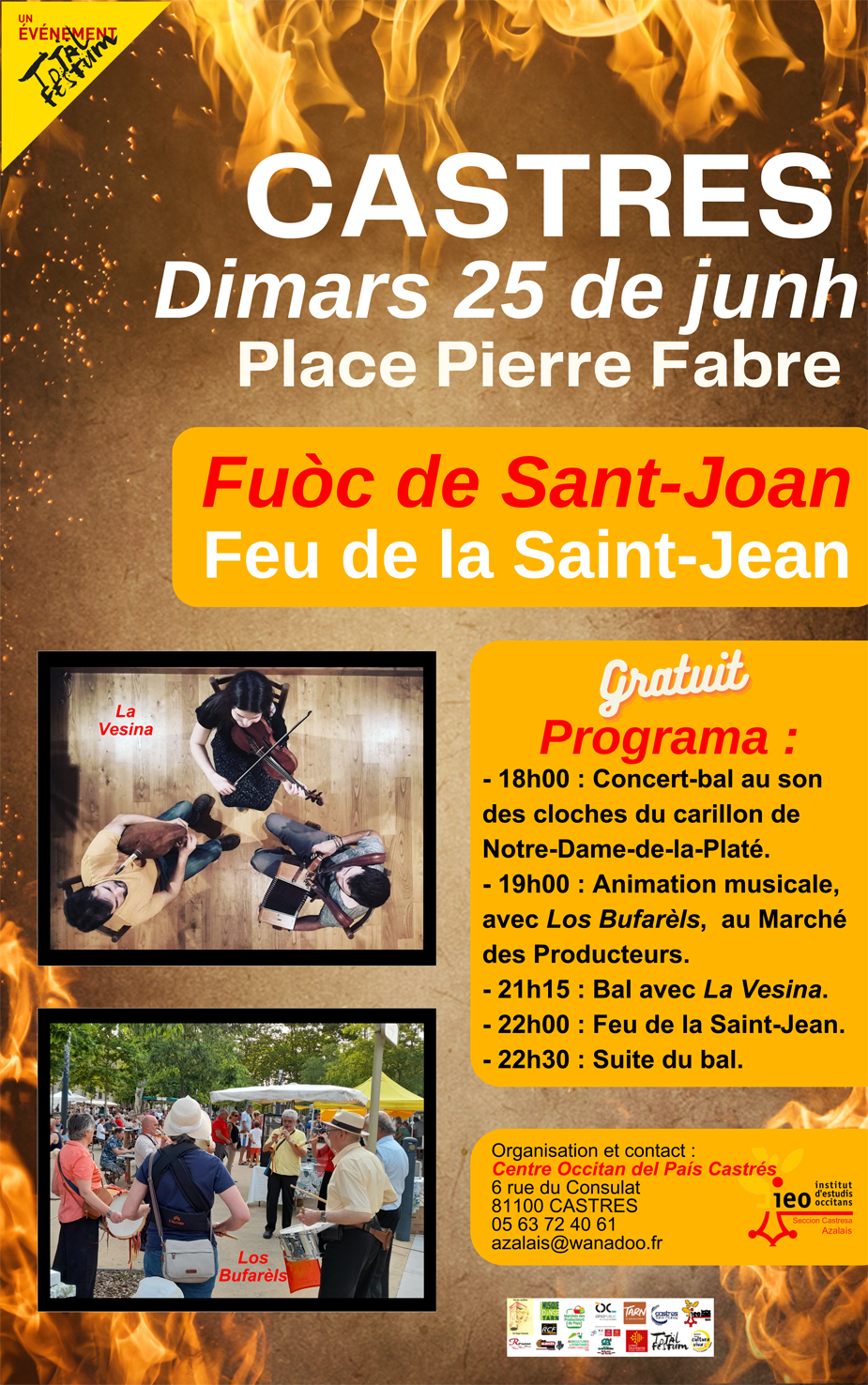 A l’occasion de la Saint-Jean, une grande fête occitane très appréciée des Castrais aura lieu le mardi 25 juin en soirée.