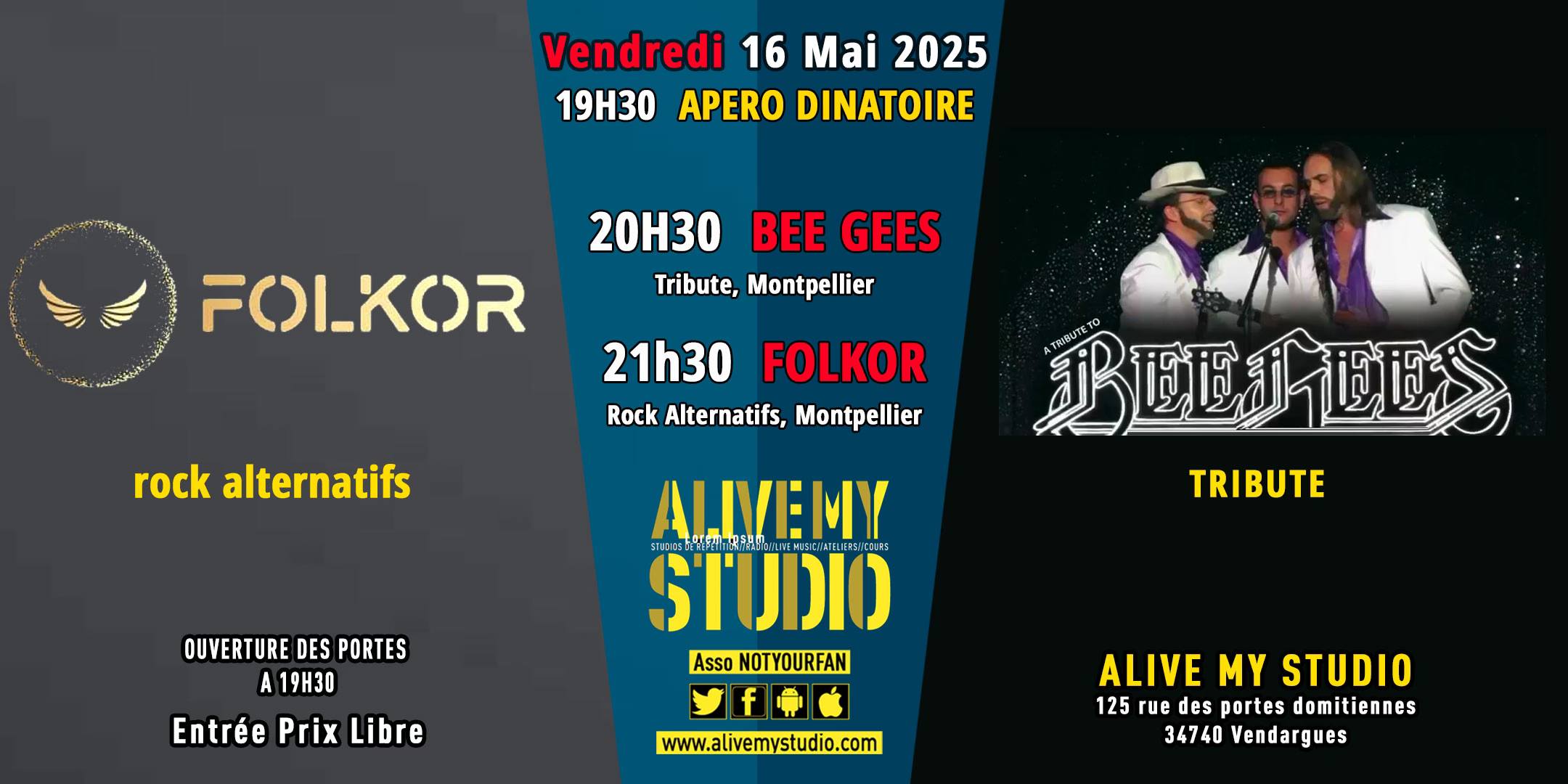 Folkor + Tribute Bee Gees - Soirée NOTYOURLIVE