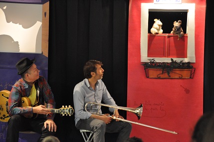 Au pied de la maison des souris et de celle des humains, deux jazzmen de rue assistent à des tranches de vie. Ils réagissent en interprétant des chansons et improvisent des morceaux de jazz. Le ton monte crescendo, puis la rue cède alors la place au dancefloor. Les instruments et l’énergie des musiciens embarquent alors les tous-petits dans un moment festif !