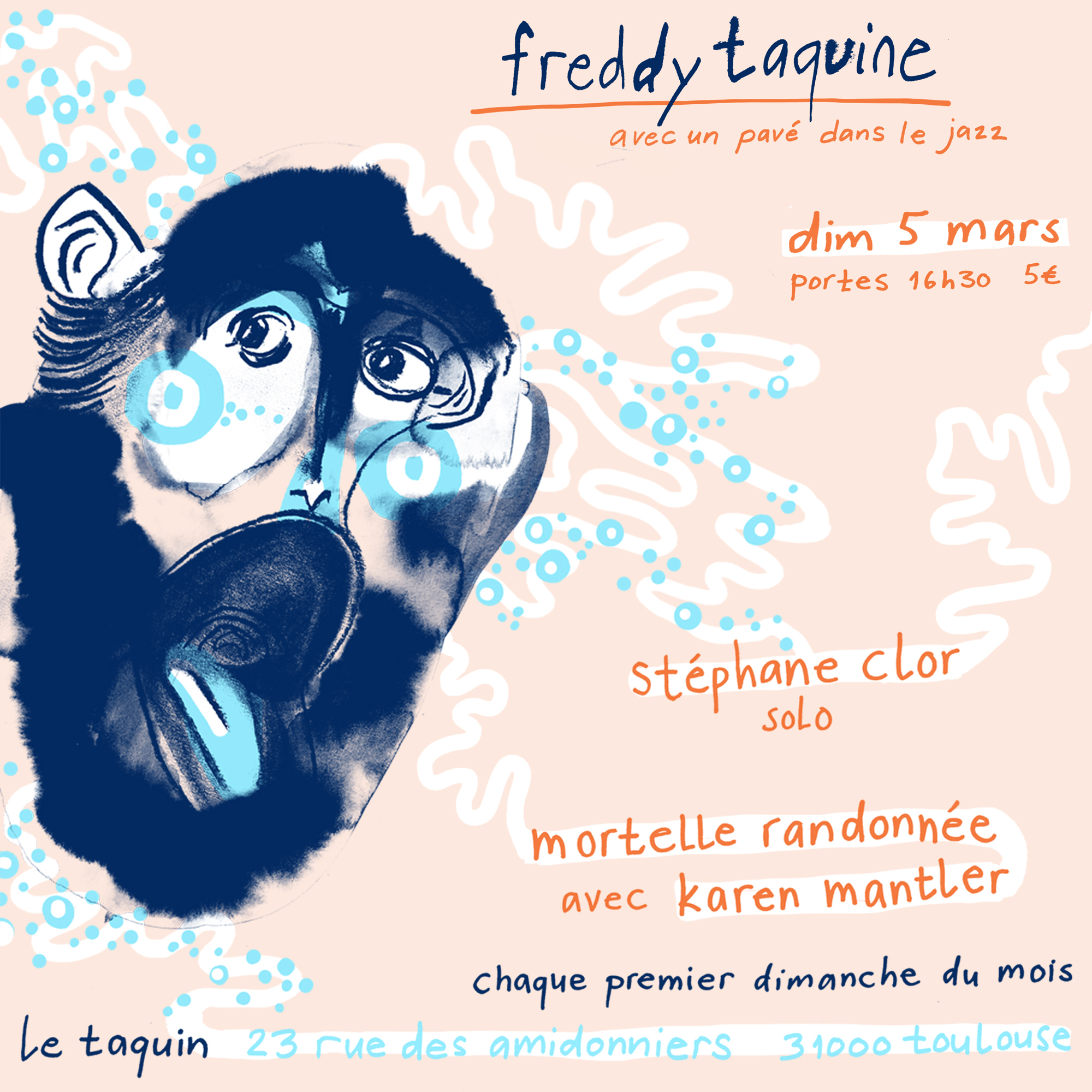 Freddy Taquine est un rendez-vous mensuel à Toulouse à l’initiative des artistes du collectif Freddy Morezon et du Taquin, le 1er dimanche de chaque mois. Un rendez-vous populaire et pluriculturel pour redonner ses lettres de noblesses à la sortie du dimanche.