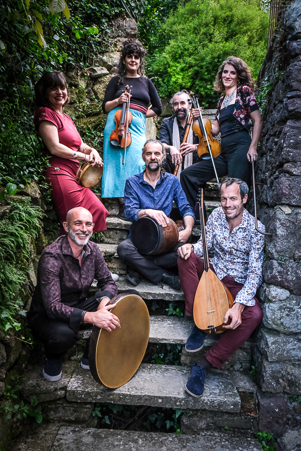 FILOS, ce sont 7 musicien.ne.s passionné.e.s de musiques méditerranéennes qui puisent dans le répertoire des musiques populaires grecques, turques et kurdes.