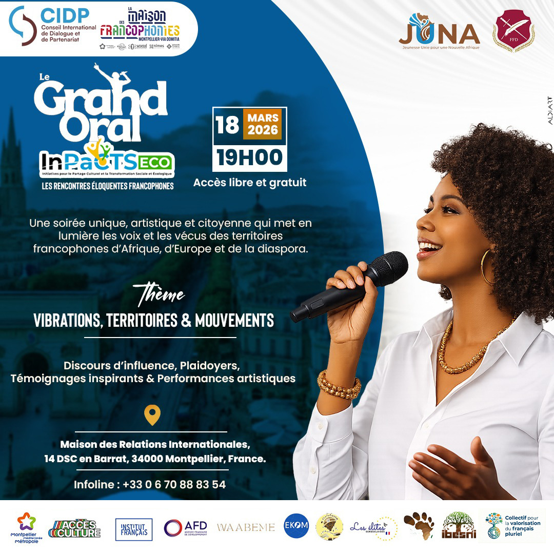 Vibration Territoires Francophones est une initiative culturelle et citoyenne qui met la parole au cœur des dynamiques de coopération entre les espaces francophones. Pensé comme un espace de dialogue, de création et de réflexion collective, le projet explore la richesse des langues, des récits et des expressions issues des territoires francophones d’Afrique, d’Europe, des Caraïbes et d’ailleurs.